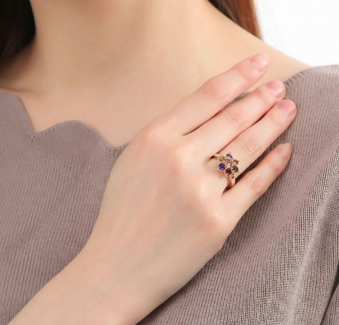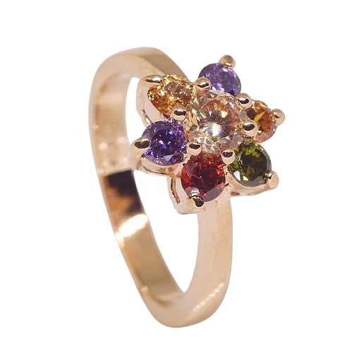 18K RGP ゴールド ダイヤ CZ カラフル フラワー リング gu1518e