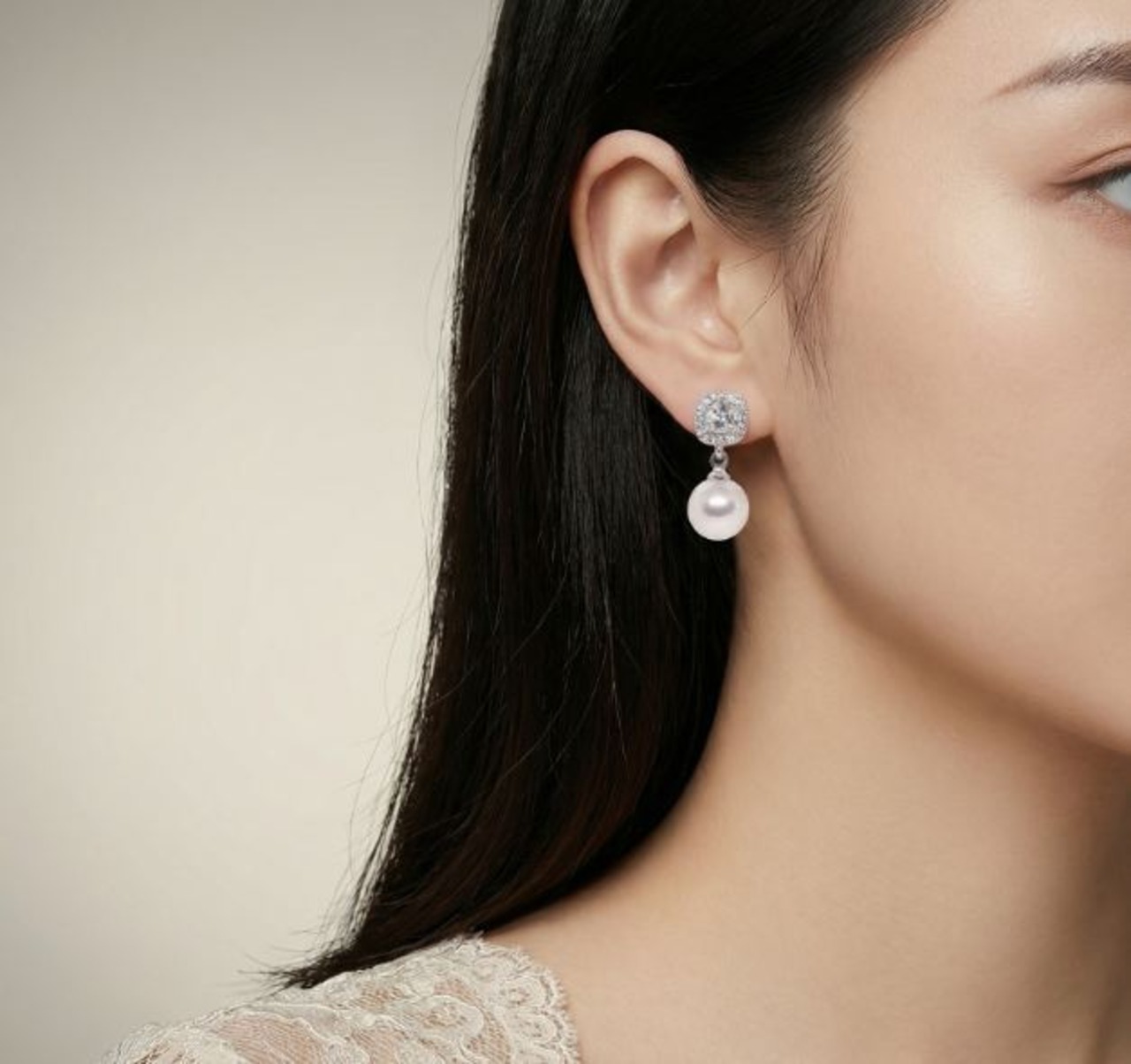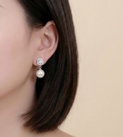 18K RGP プラチナ ダイヤ CZ 一粒 パール イヤリング yp5092