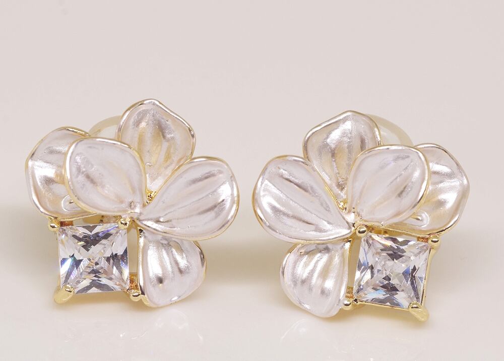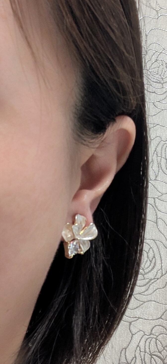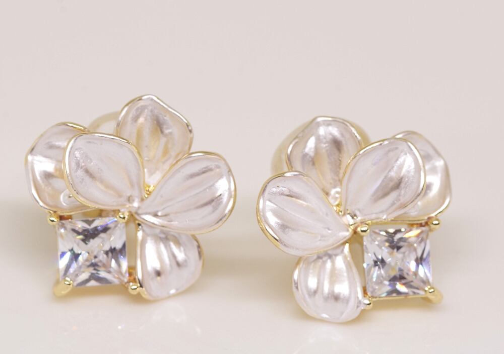 18K RGP ゴールド ダイヤ CZ フラワー イヤリング gp5798