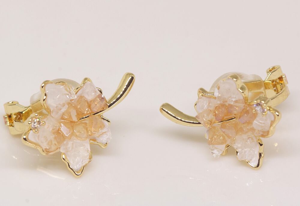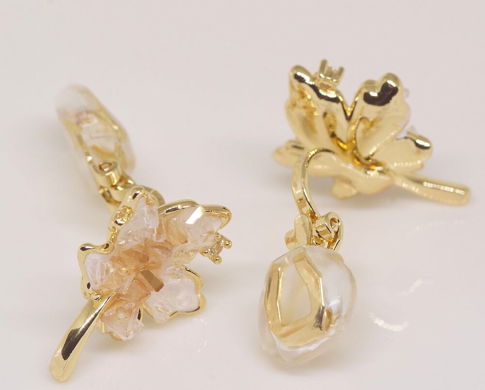 18K RGP ゴールド ダイヤ CZ 水晶 葉っぱ イヤリング gp5801