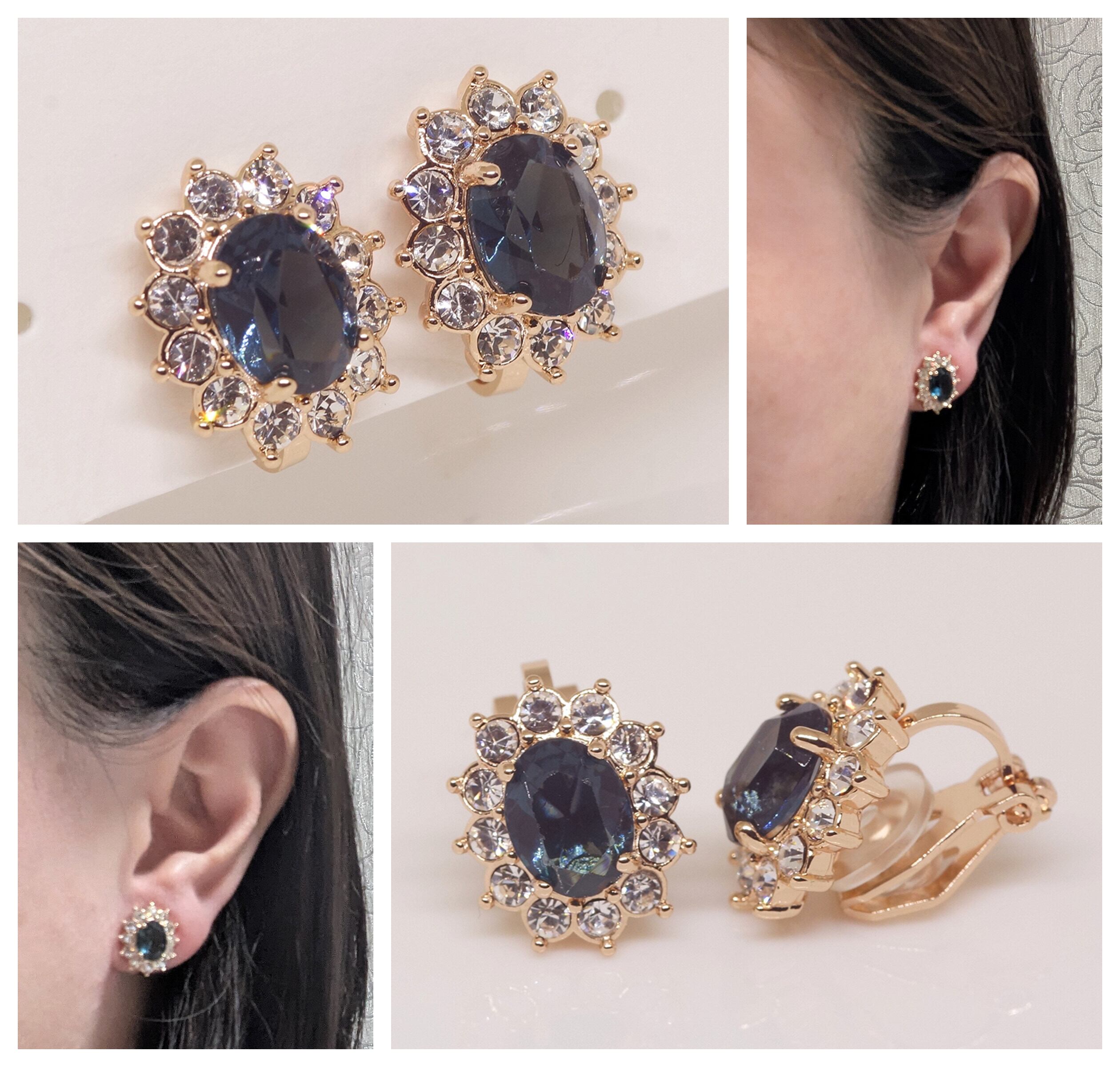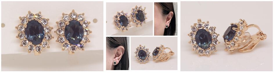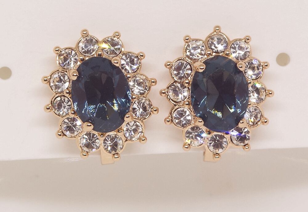 18K RGP ゴールド ダイヤ CZ ブルー フラワー イヤリング gp5795