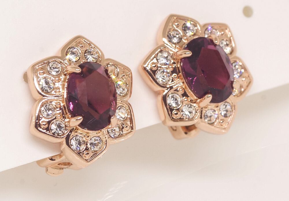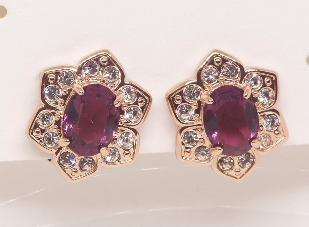 18K RGP ゴールド ダイヤ CZ 赤紫 フラワー イヤリング gp5793
