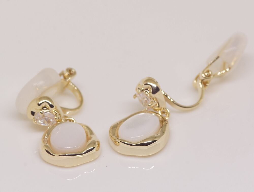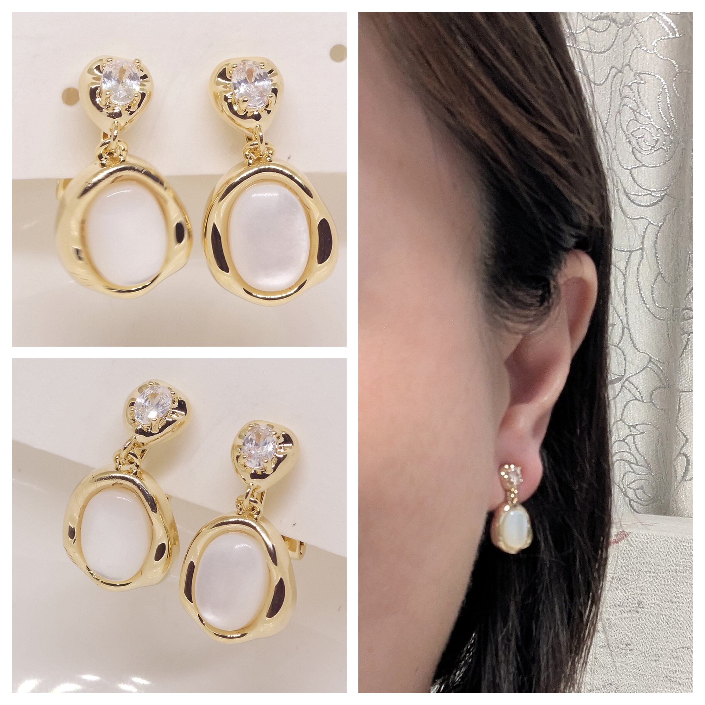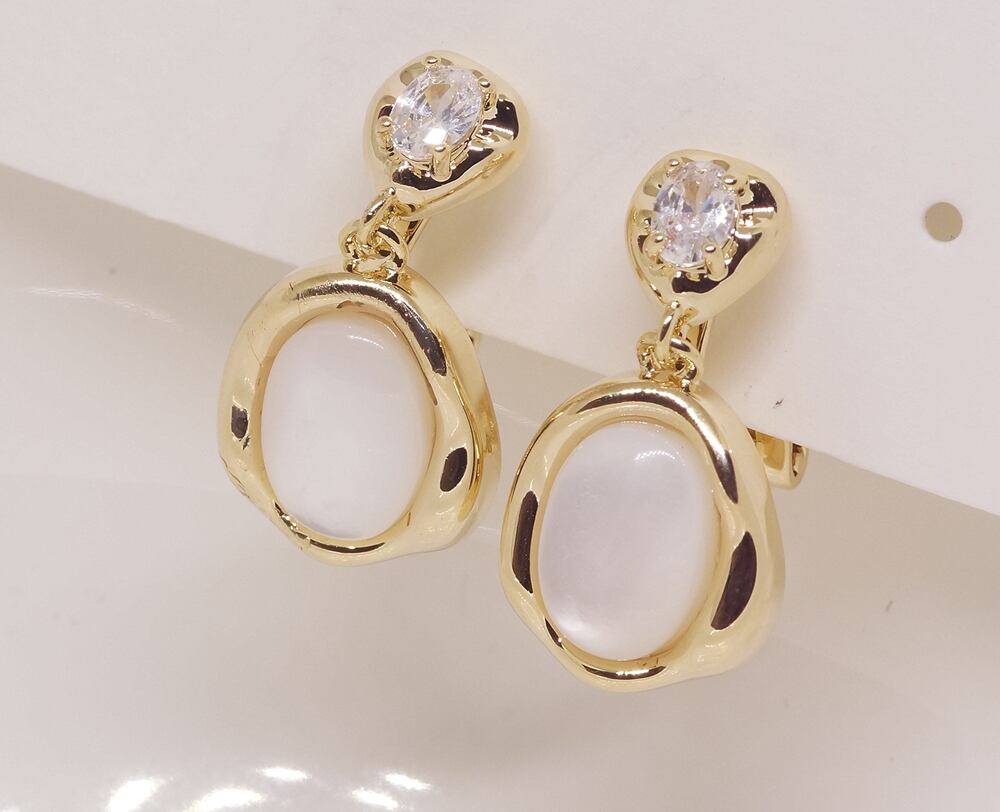 18K RGP ゴールド ダイヤ CZ  一粒 貝殻石 揺れ イヤリング gp5790