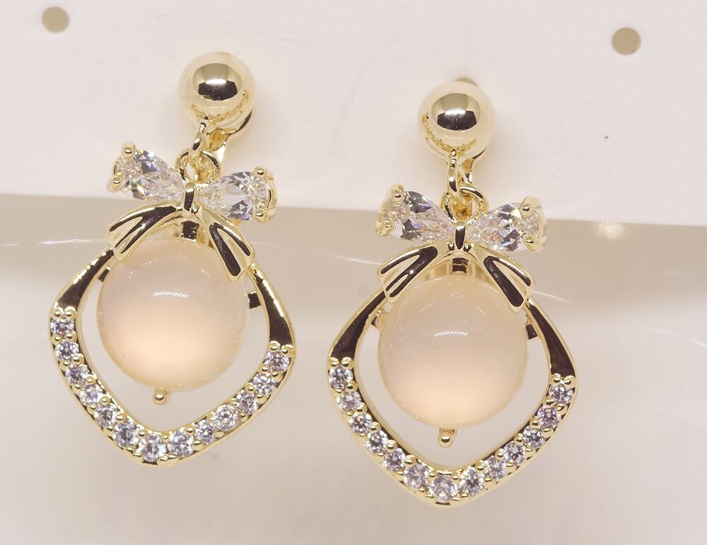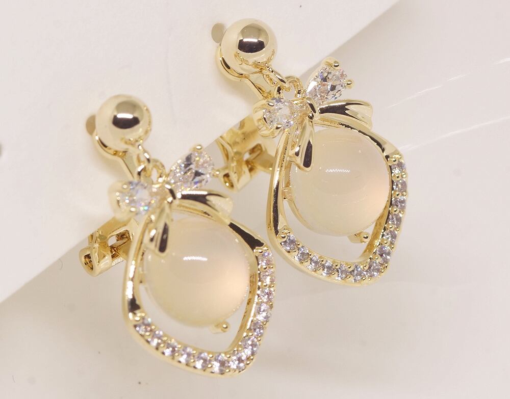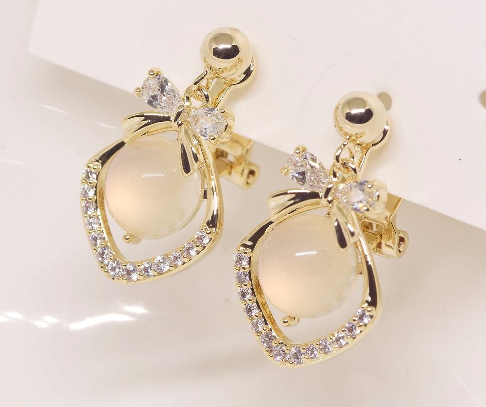 18K RGP ゴールド ダイヤ CZ リボン 雫 イヤリング gp5813