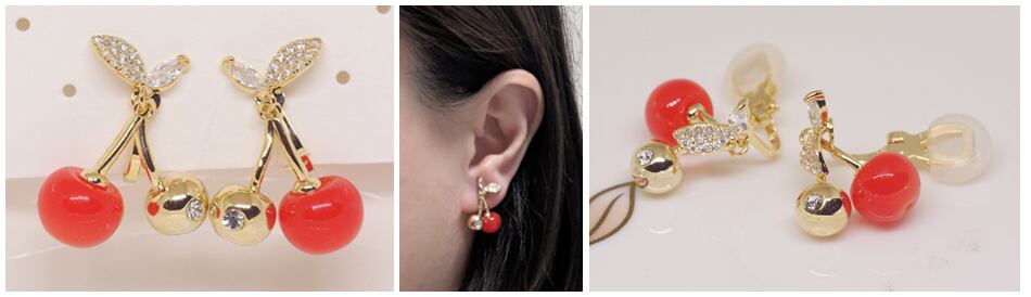 18K RGP ゴールド ダイヤ CZ  チェリー イヤリング gp5808