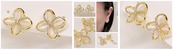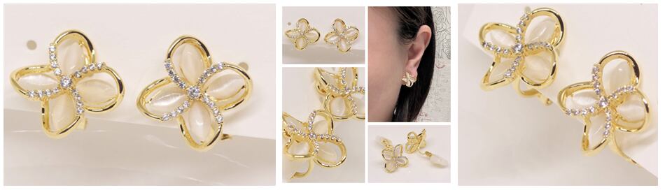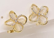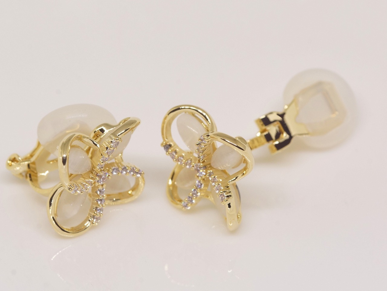 18K RGP ゴールド ダイヤ CZ 四葉 フラワー イヤリング gp5804