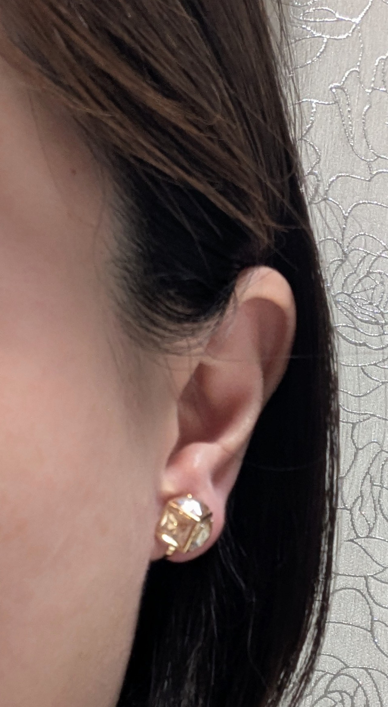 18K RGP ゴールド ダイヤ CZ 薄琥珀色 立方体 イヤリング gp5811