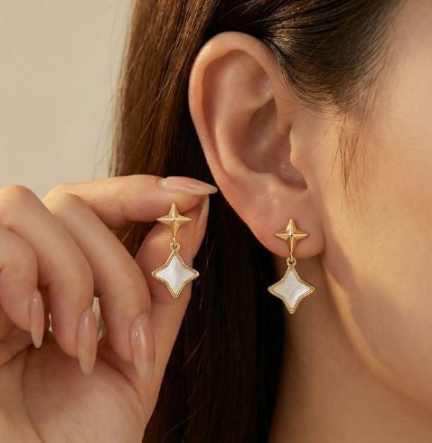 18K RGP ゴールド スター 天然貝殻石 揺れ イヤリング gp5802