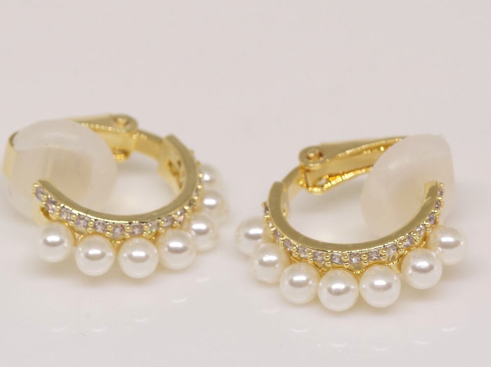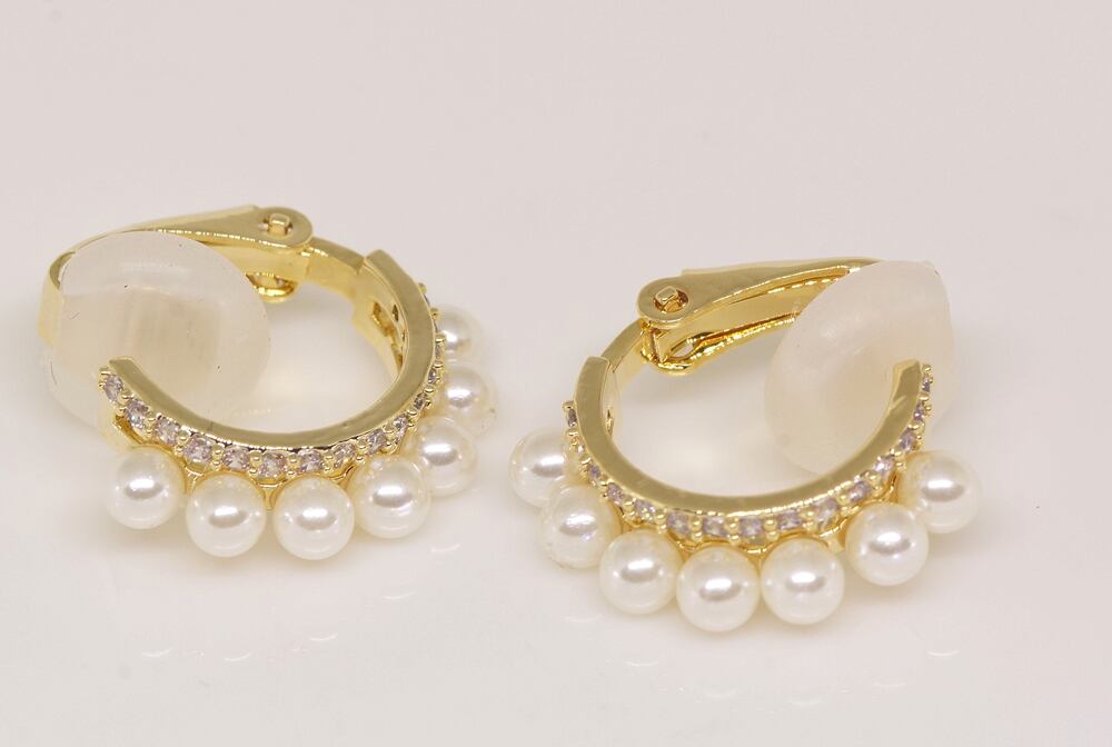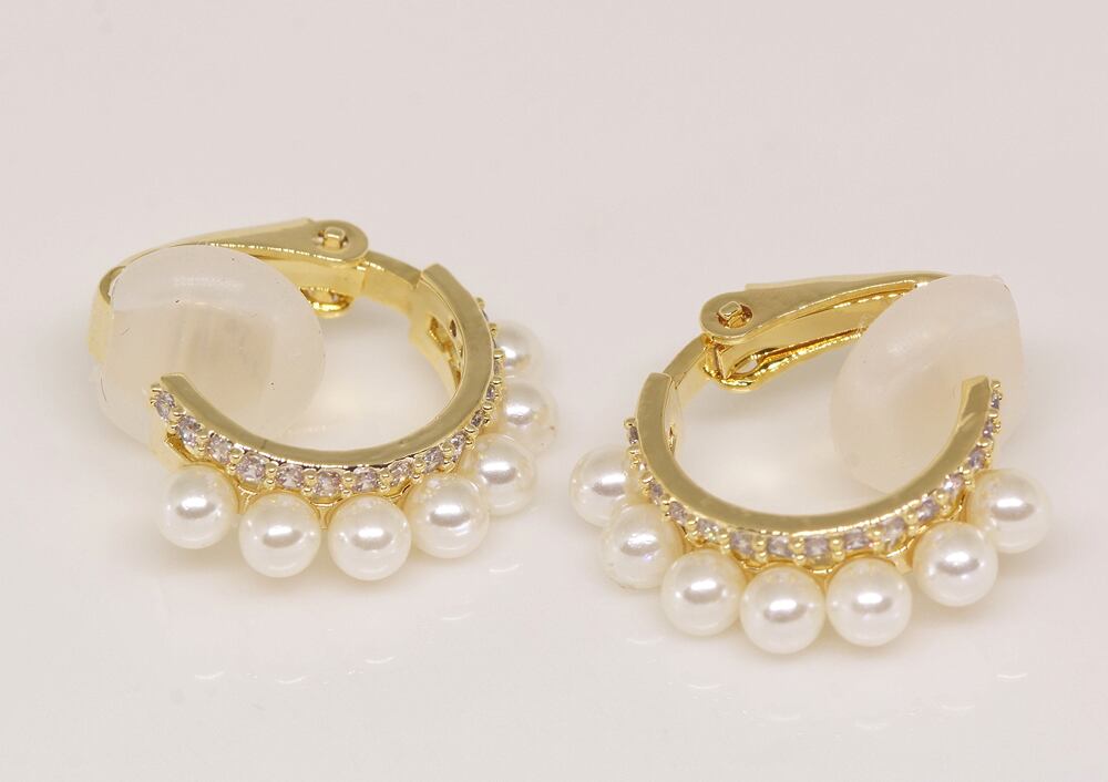 18K RGP ゴールド ダイヤ CZ パール イヤリング gp5810