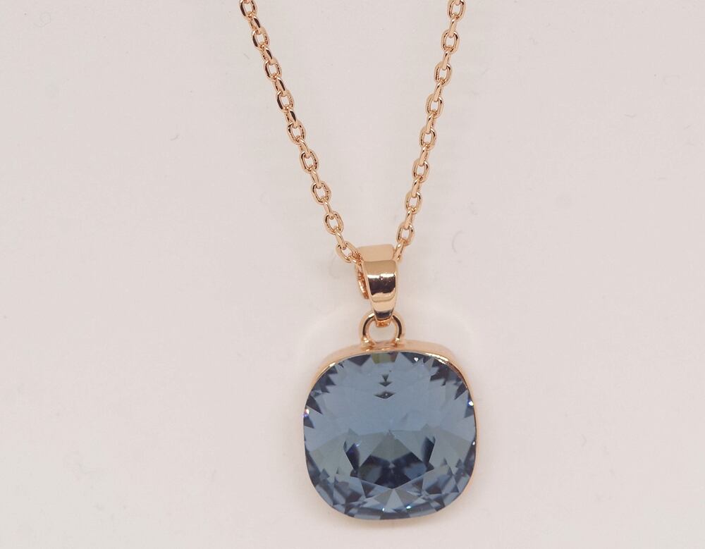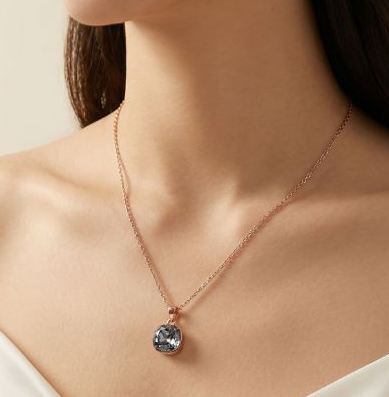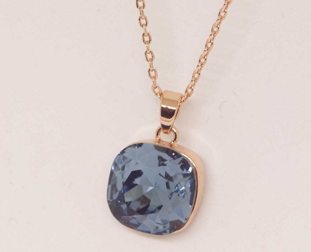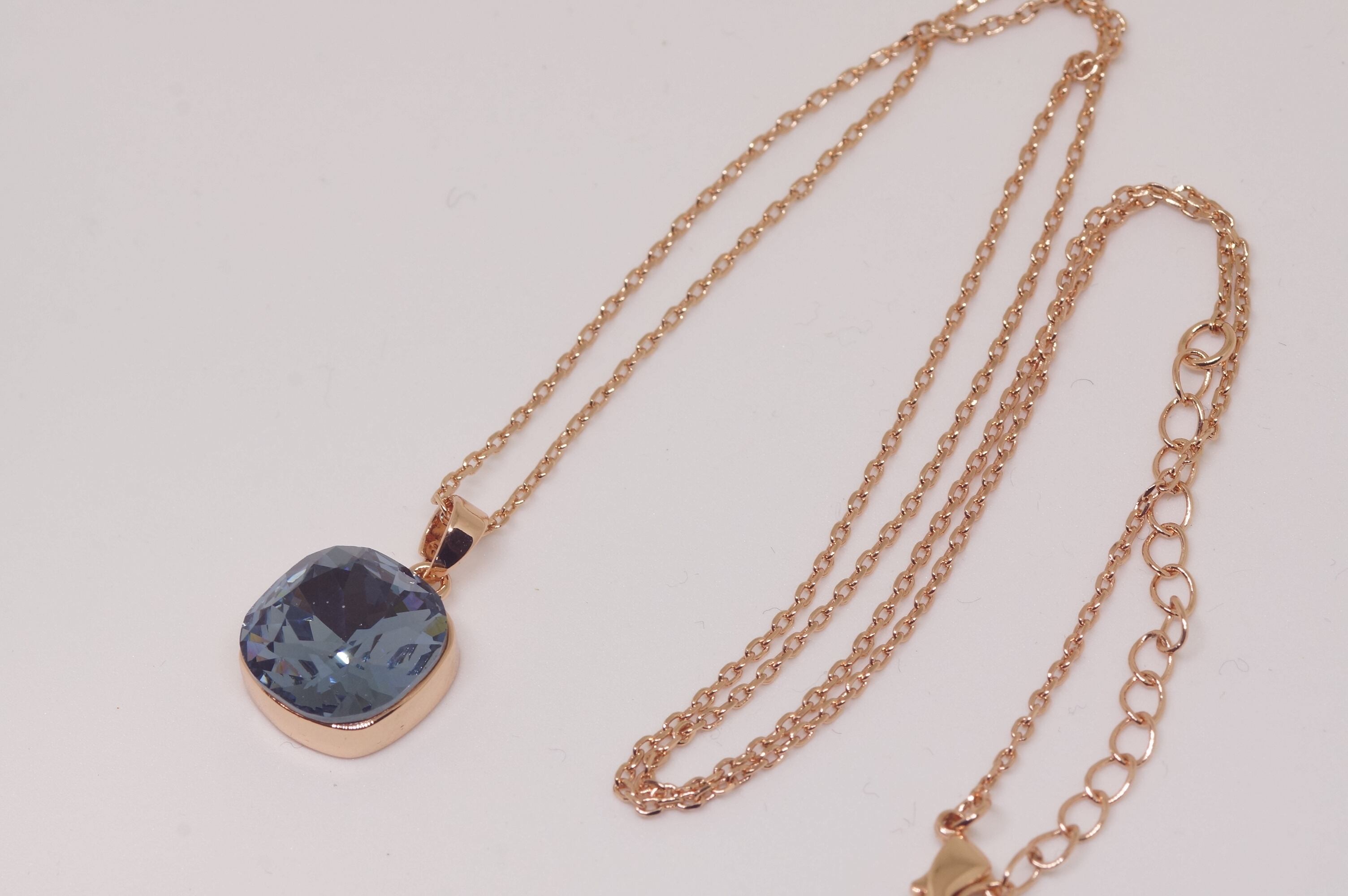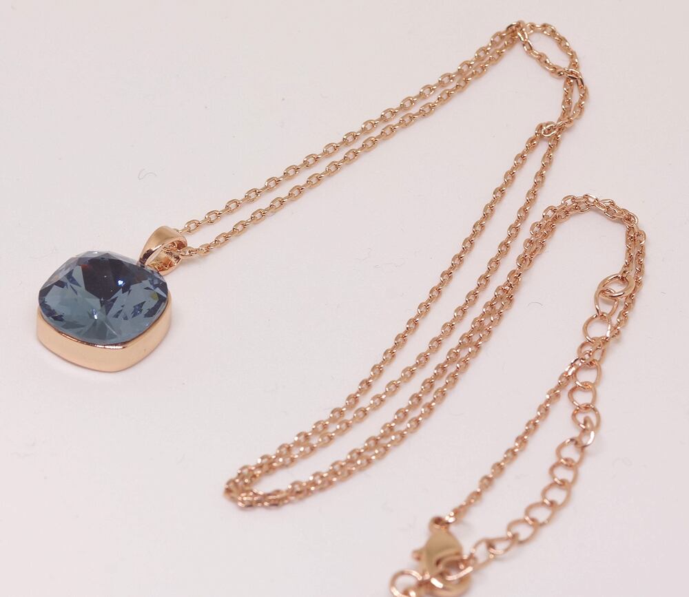 18K RGP ゴールド ダイヤ CZ ブルー 大粒 ネックレス pn3908