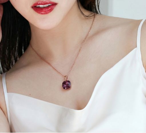 18K RGP ゴールド ダイヤ CZ 赤紫 大粒 ネックレス pn3911