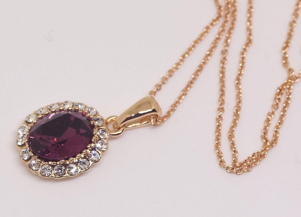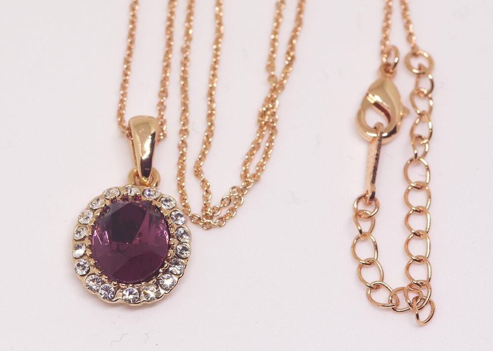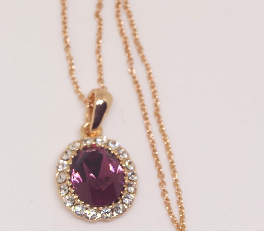 18K RGP ゴールド ダイヤ CZ 赤紫 大粒 ネックレス pn3907