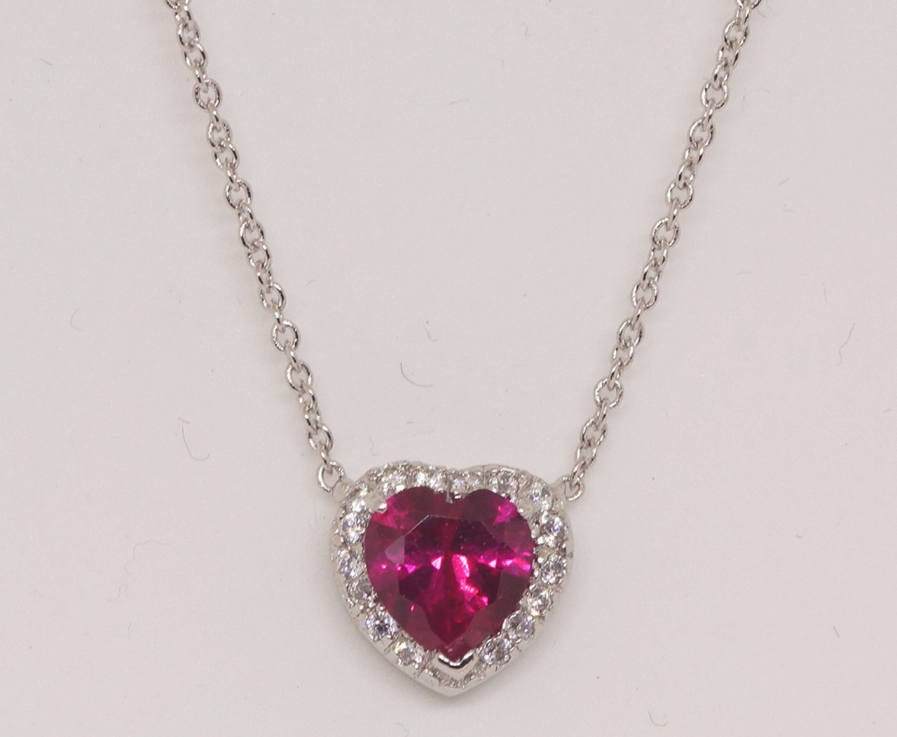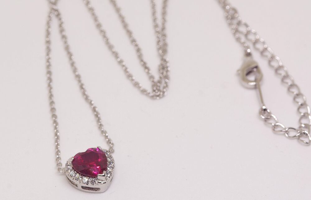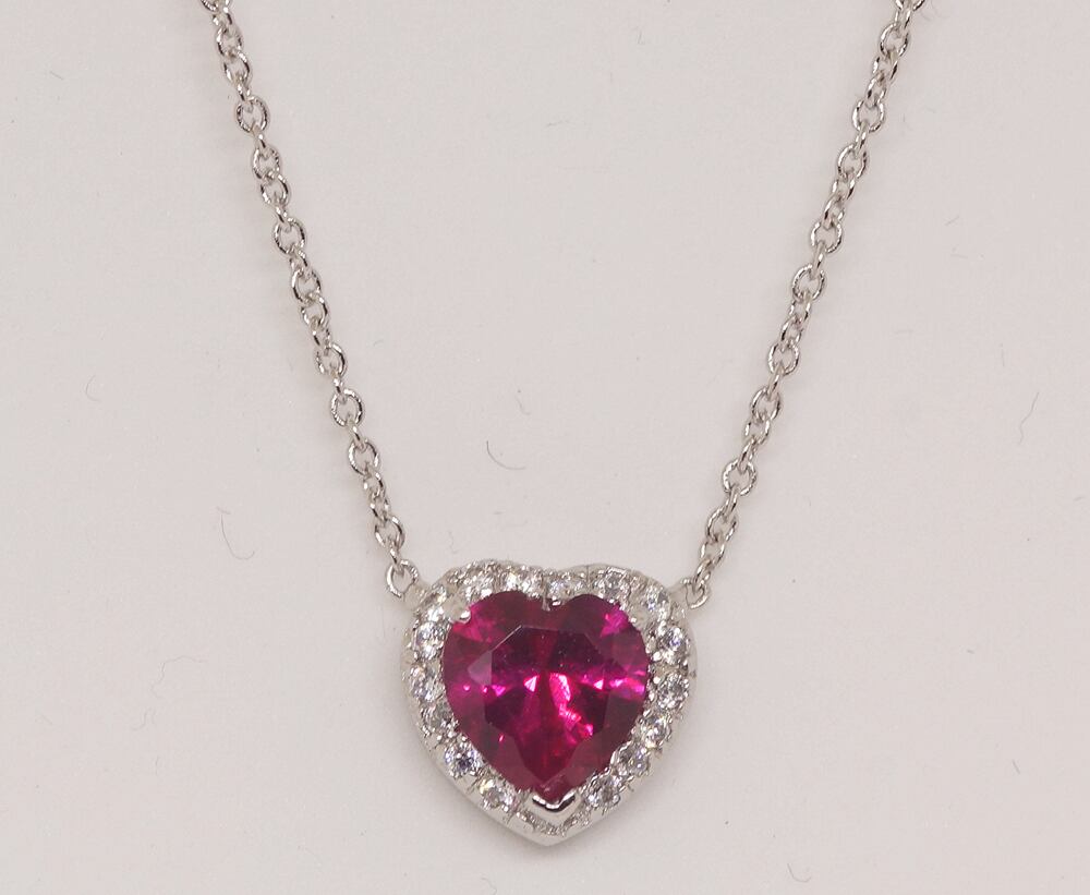 18K RGP プラチナ ダイヤ CZ 赤ワイン色 ハート ネックレス yn3190