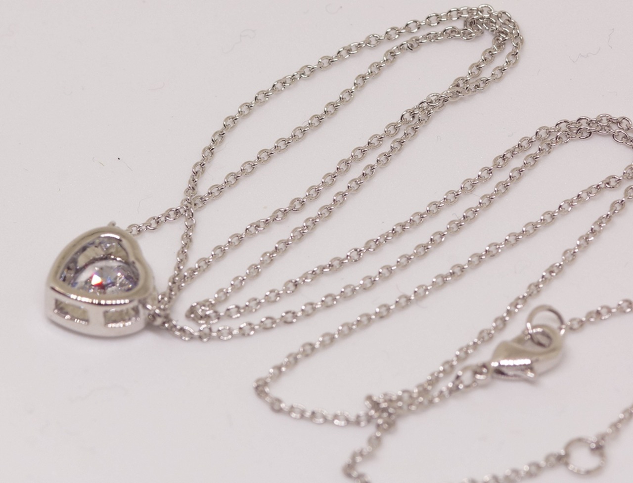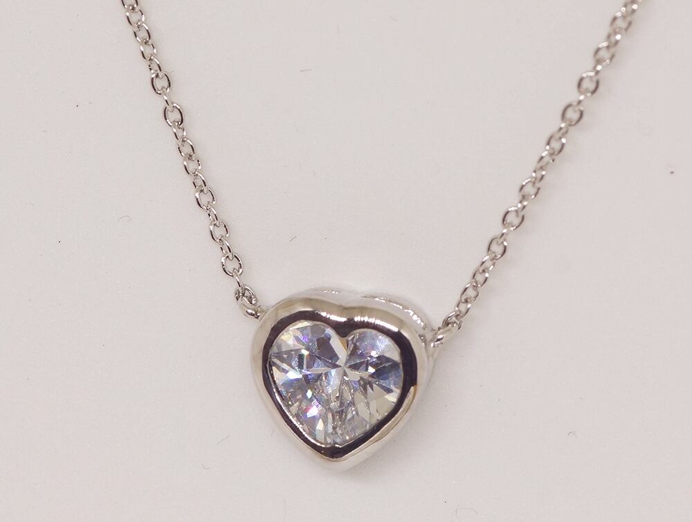 18K RGP プラチナ ダイヤ CZ ハート ネックレス yn3191