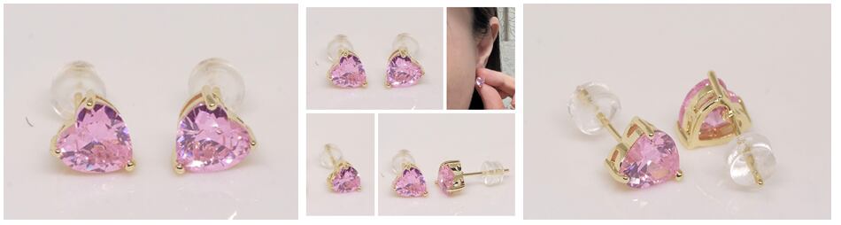 18K RGP ゴールド ダイヤ CZ ピンク ハート ピアス gp5797