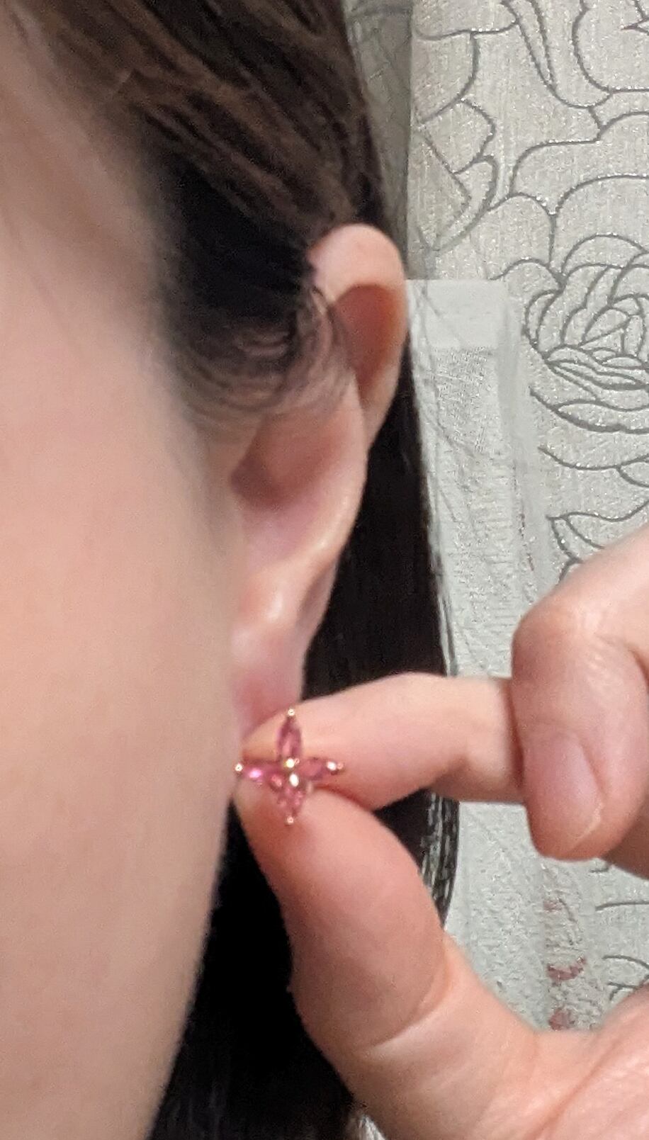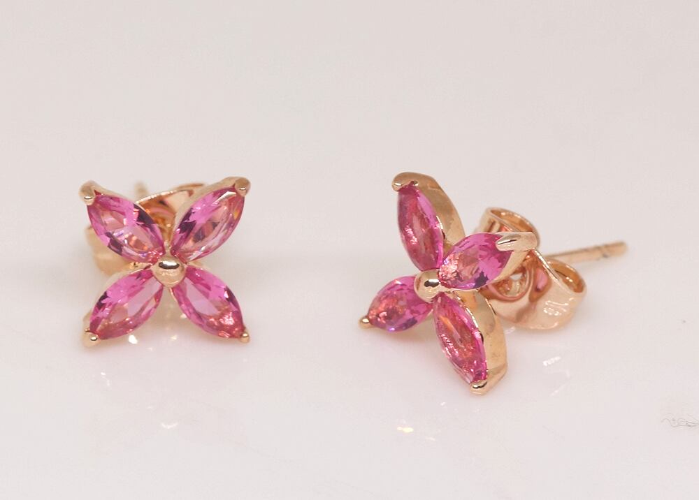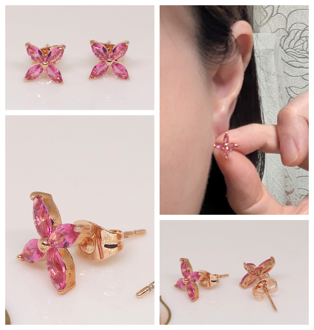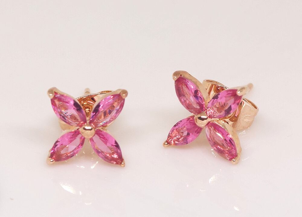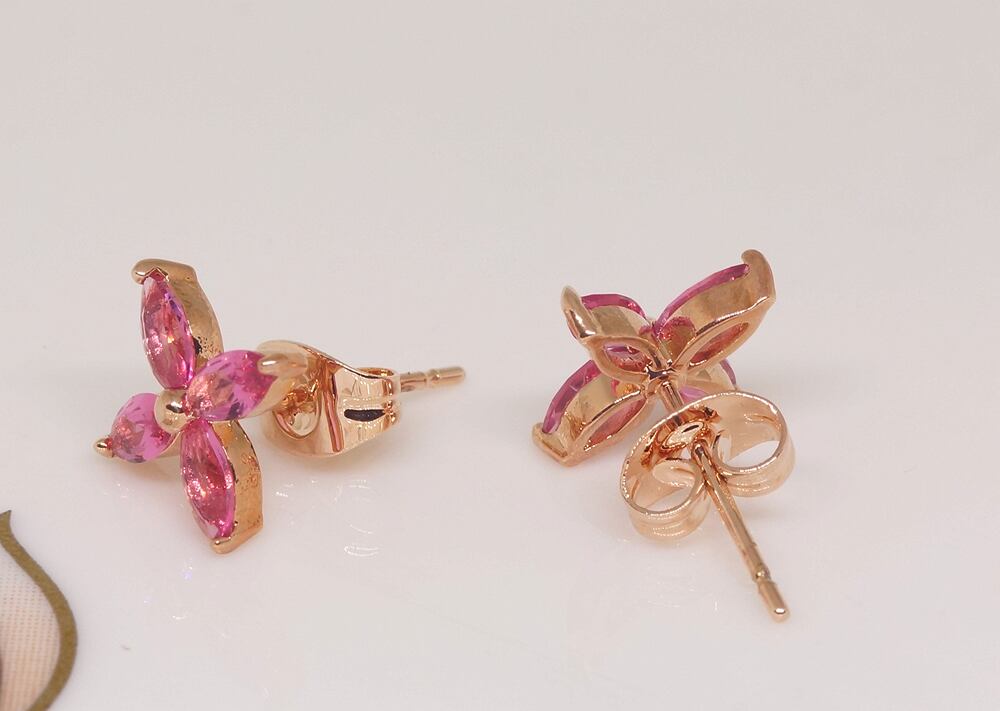 18K RGP ゴールドダイヤ CZ 赤ワイン色 四葉 フラワー ピアス gp5789