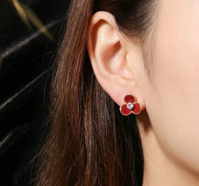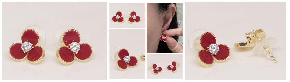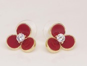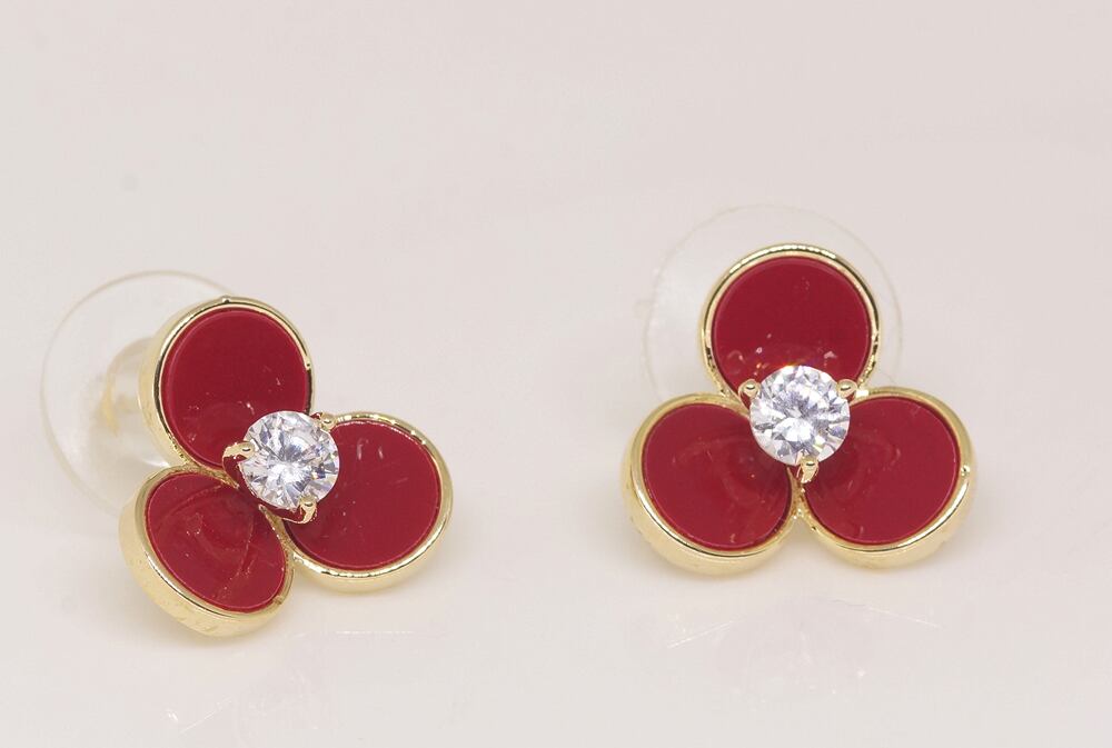 18K RGP ゴールド ダイヤ CZ レッド 三つ葉 ピアス gp5794