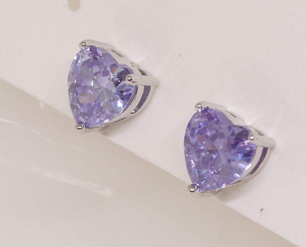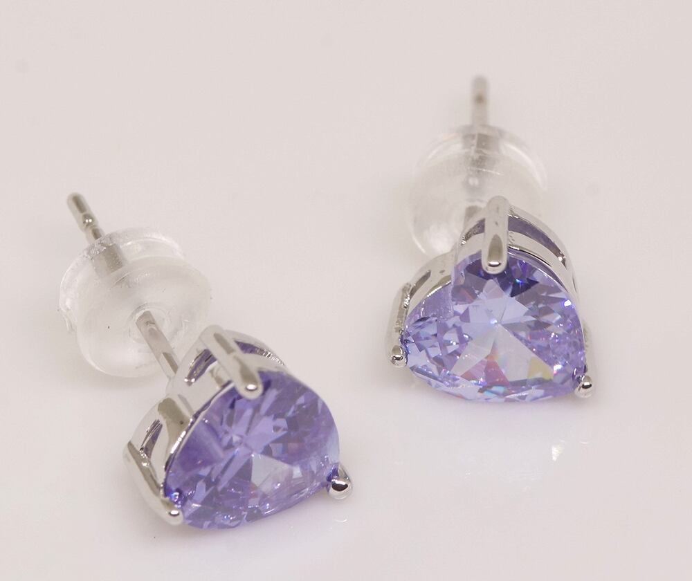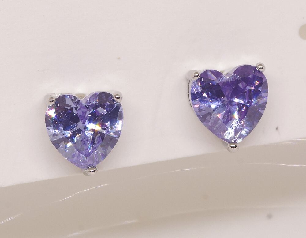 18K RGP プラチナ ダイヤ CZ 紫 ハート ピアス yp5086