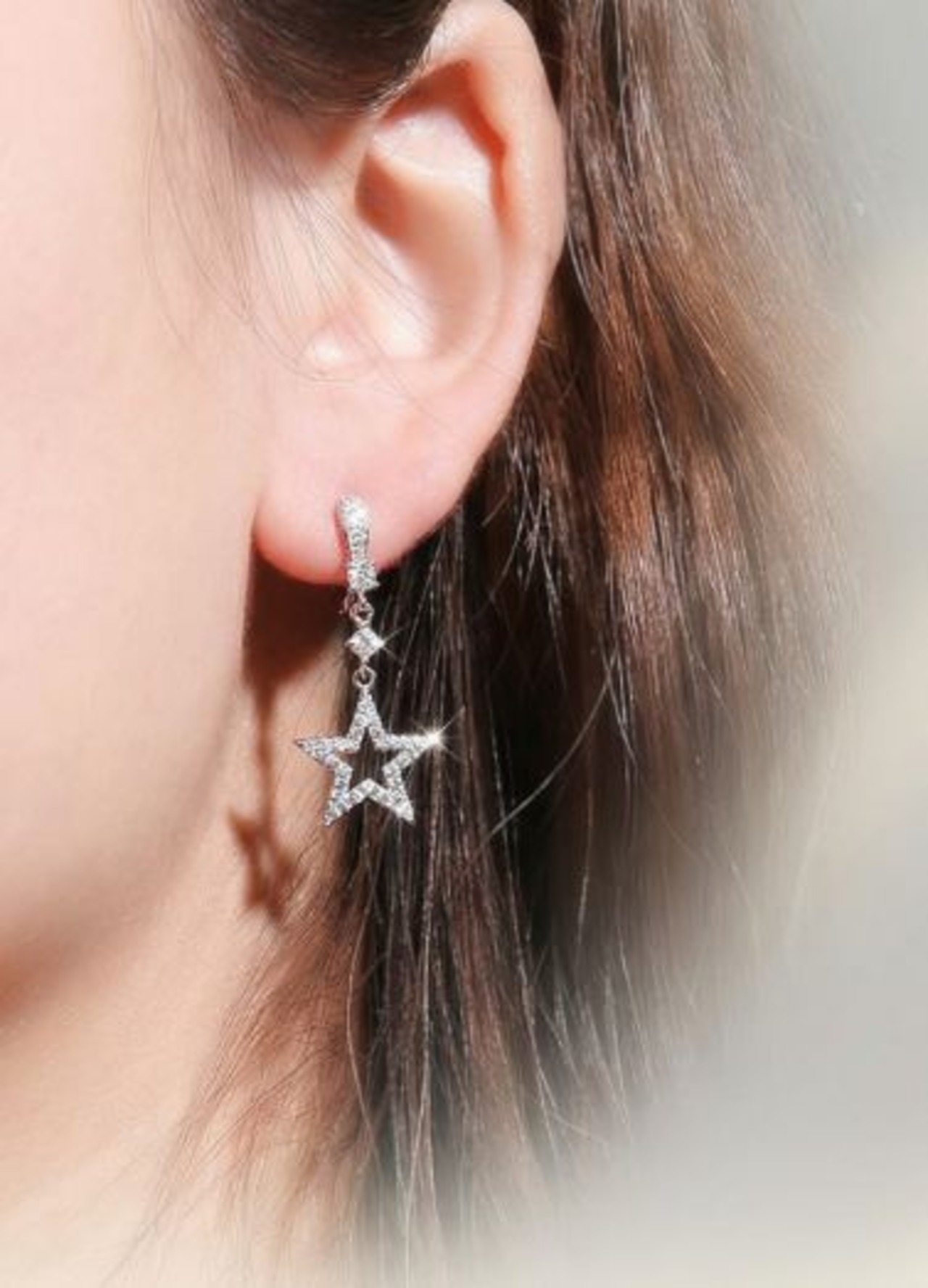 18K RGP プラチナ ダイヤ CZ スター ムーン ピアス yp4638