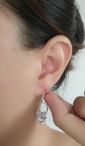 18K RGP プラチナ ダイヤ CZ リボン 一粒 揺れ ピアス yp4656