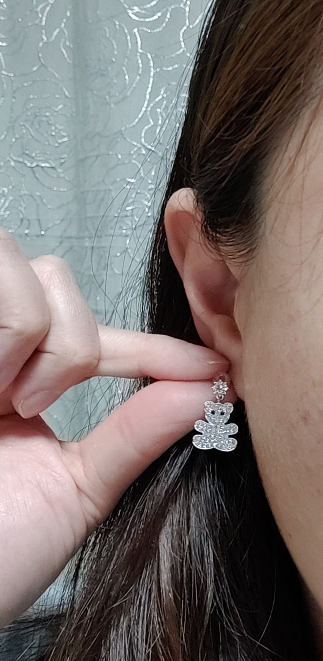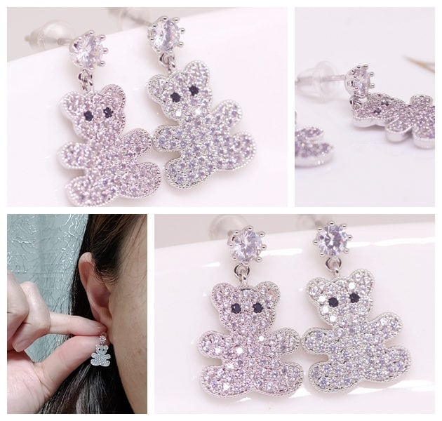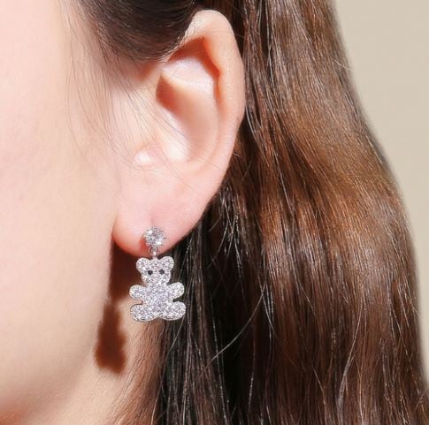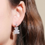 18K RGP プラチナ ダイヤ CZ 一粒 クマ ちゃん 揺れ ピアス yp4742