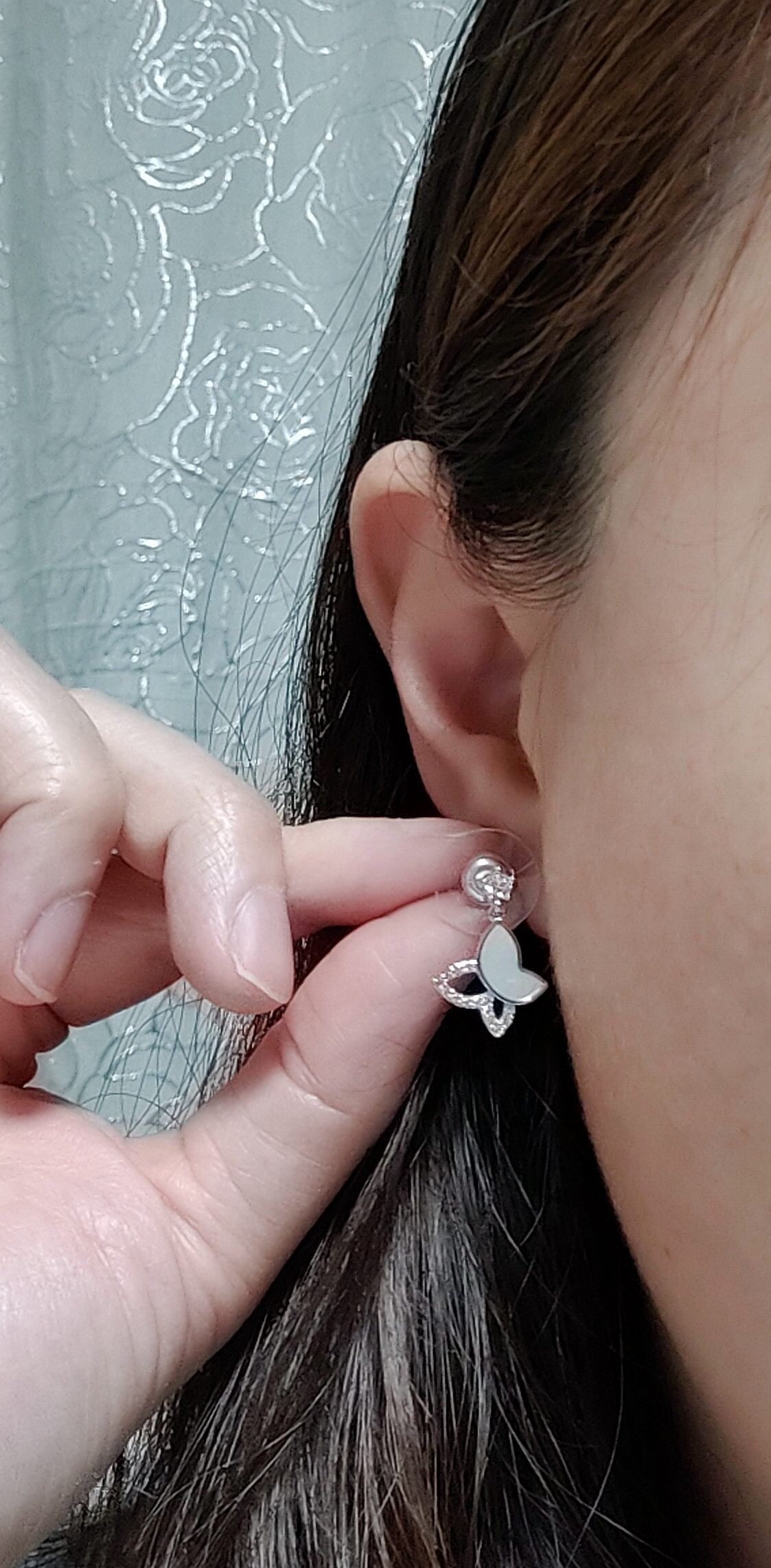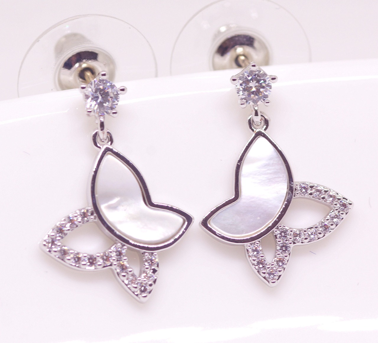 18K RGP プラチナ ダイヤ CZ 貝殻石 蝶々 ピアス yp4748
