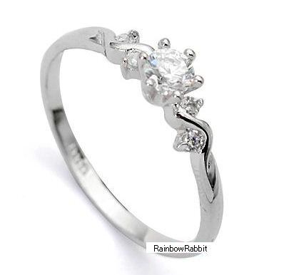 18K RGP プラチナ ダイヤ CZ フラワー リング yu716e