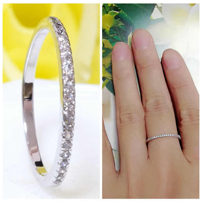 18K RGP プラチナ ダイヤ CZ ハーフ エタニティ リング yu891e