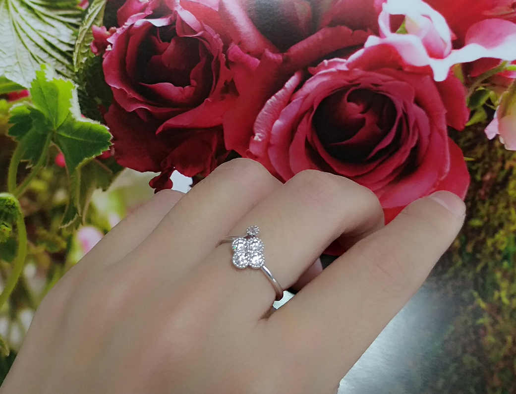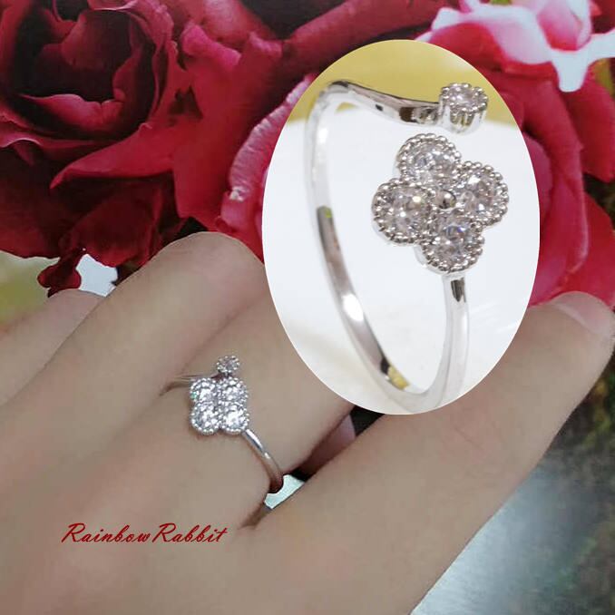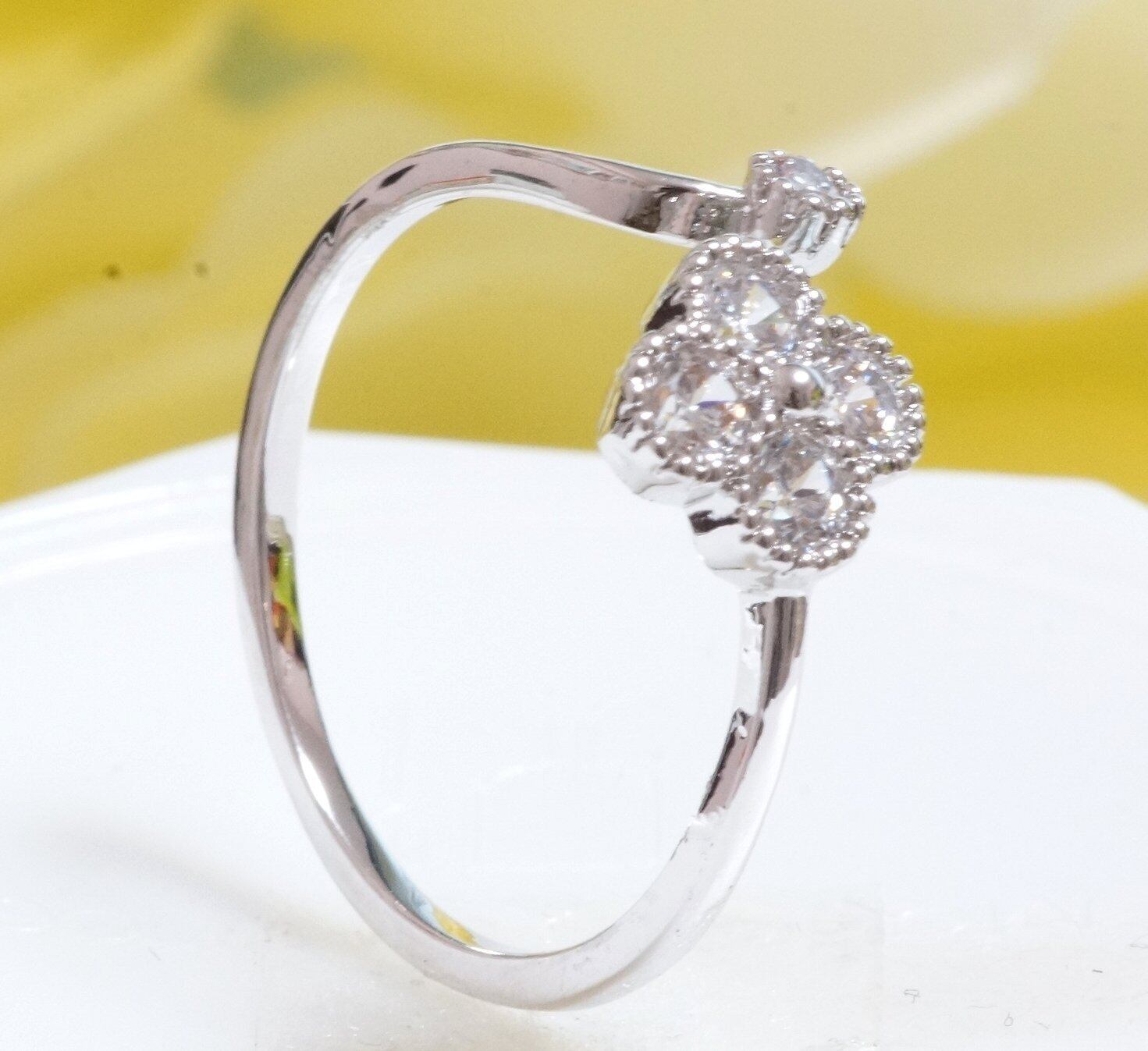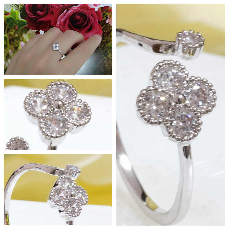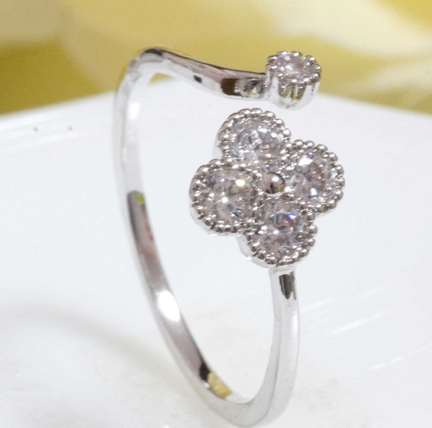 18K RGP プラチナ ダイヤ CZ 四葉 フラワー リング yu969e