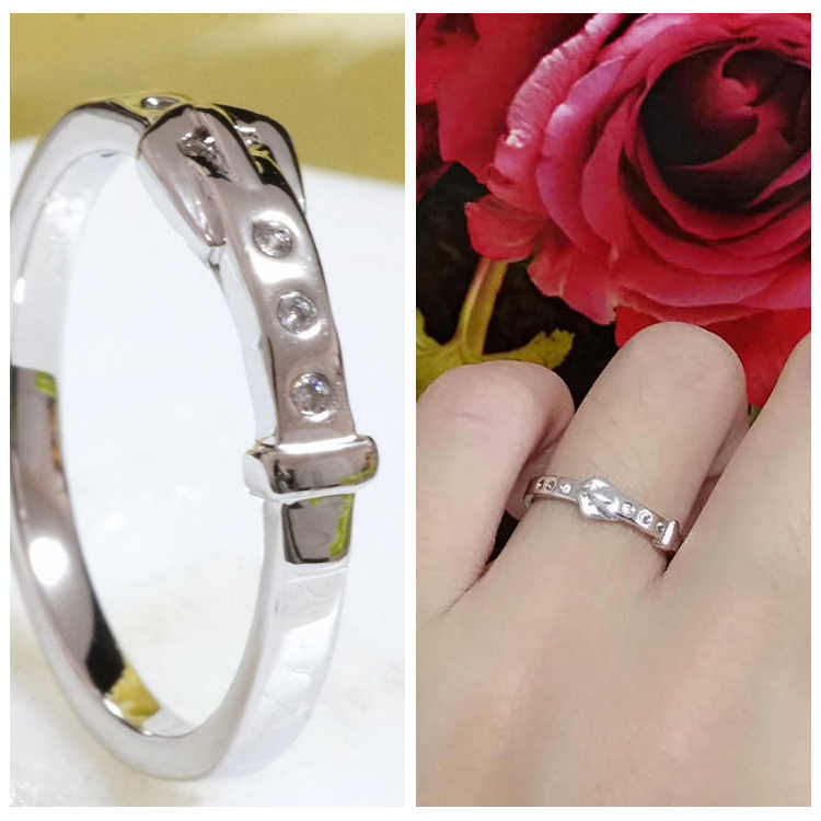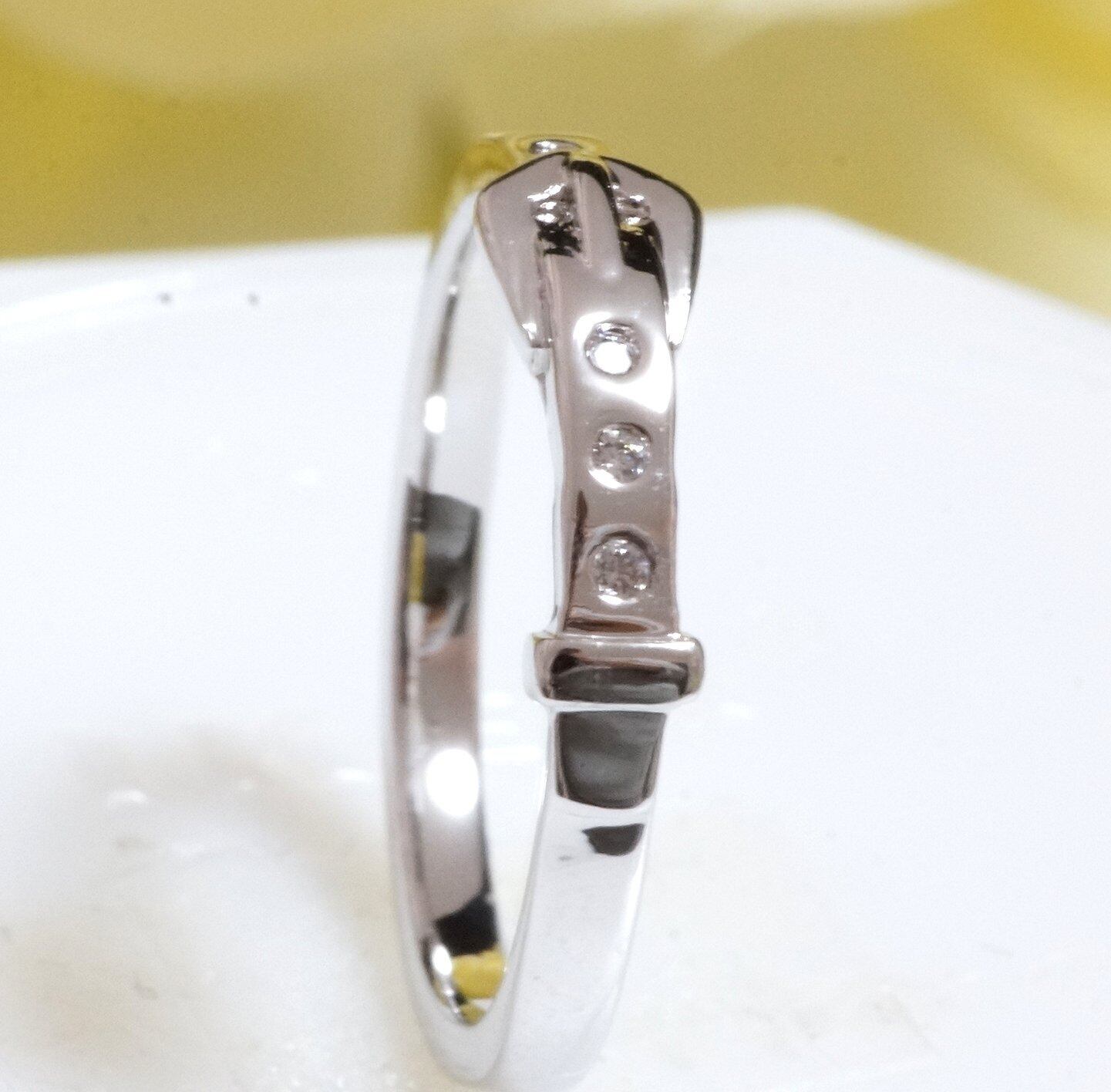 18K RGP プラチナ ダイヤ CZ ベルト 模様 リング yu983e