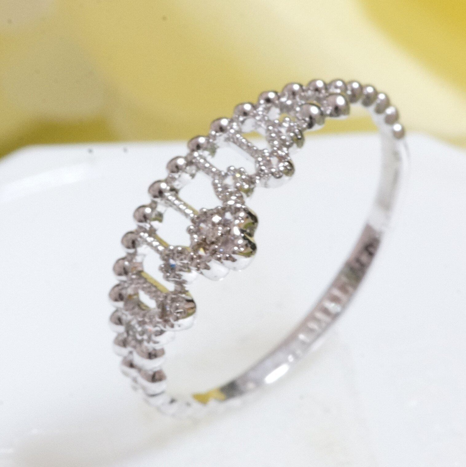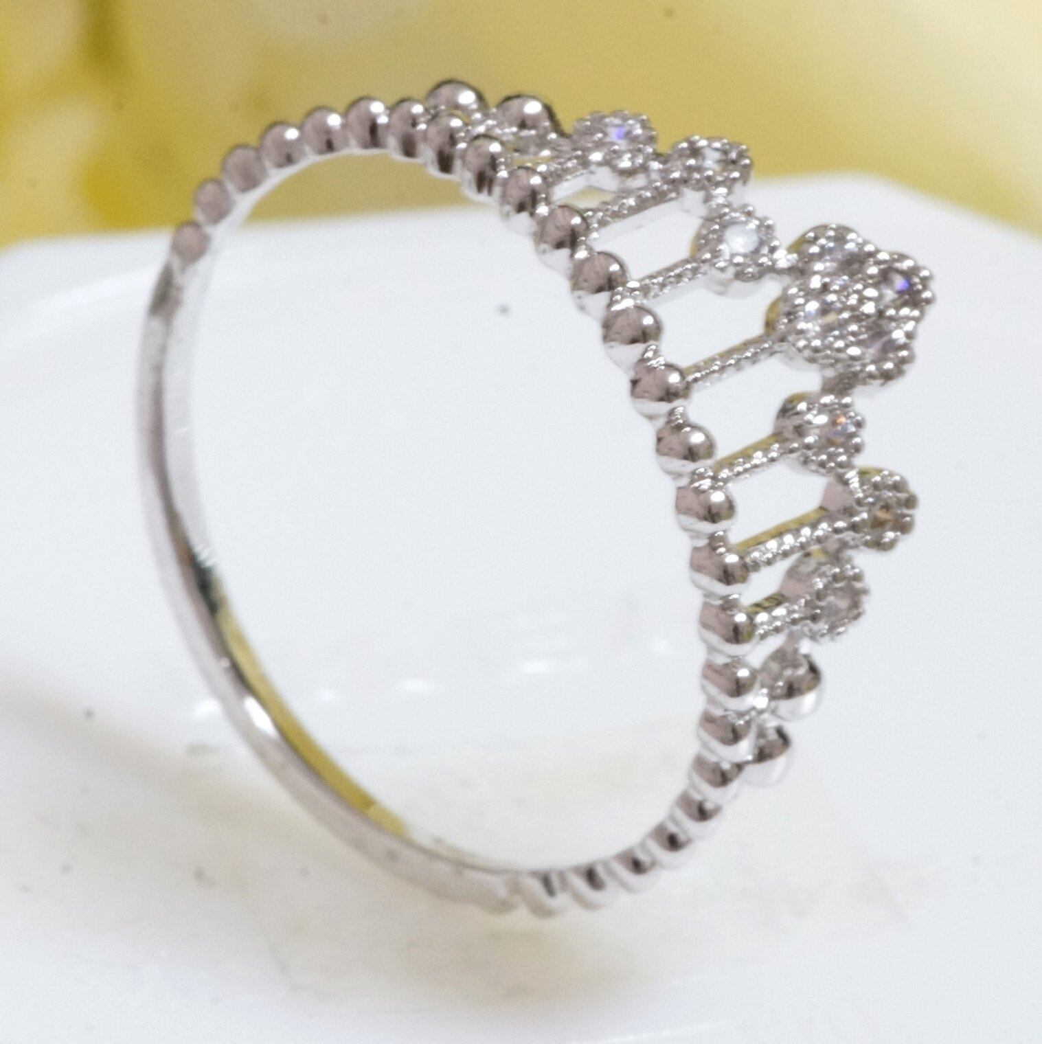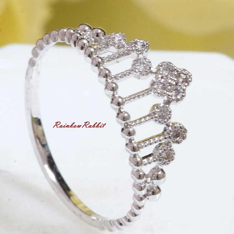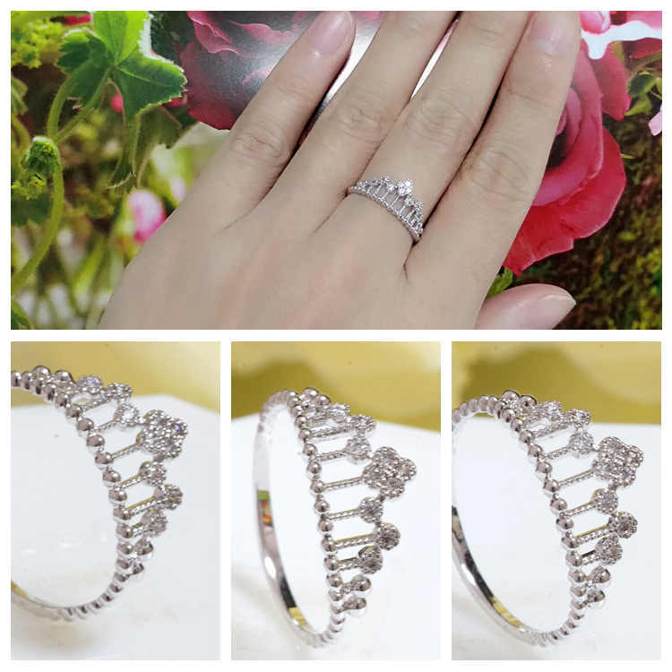 18K RGP プラチナ ダイヤ CZ フラワー 王冠 リング yu984e