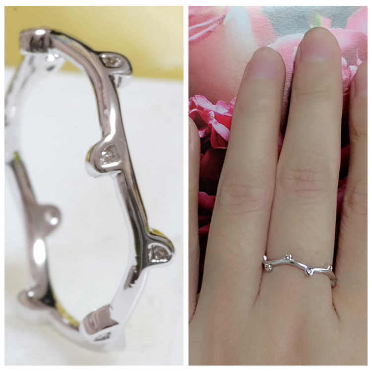 18K RGP プラチナ ダイヤ CZ フラワー 繊細 リング yu985e