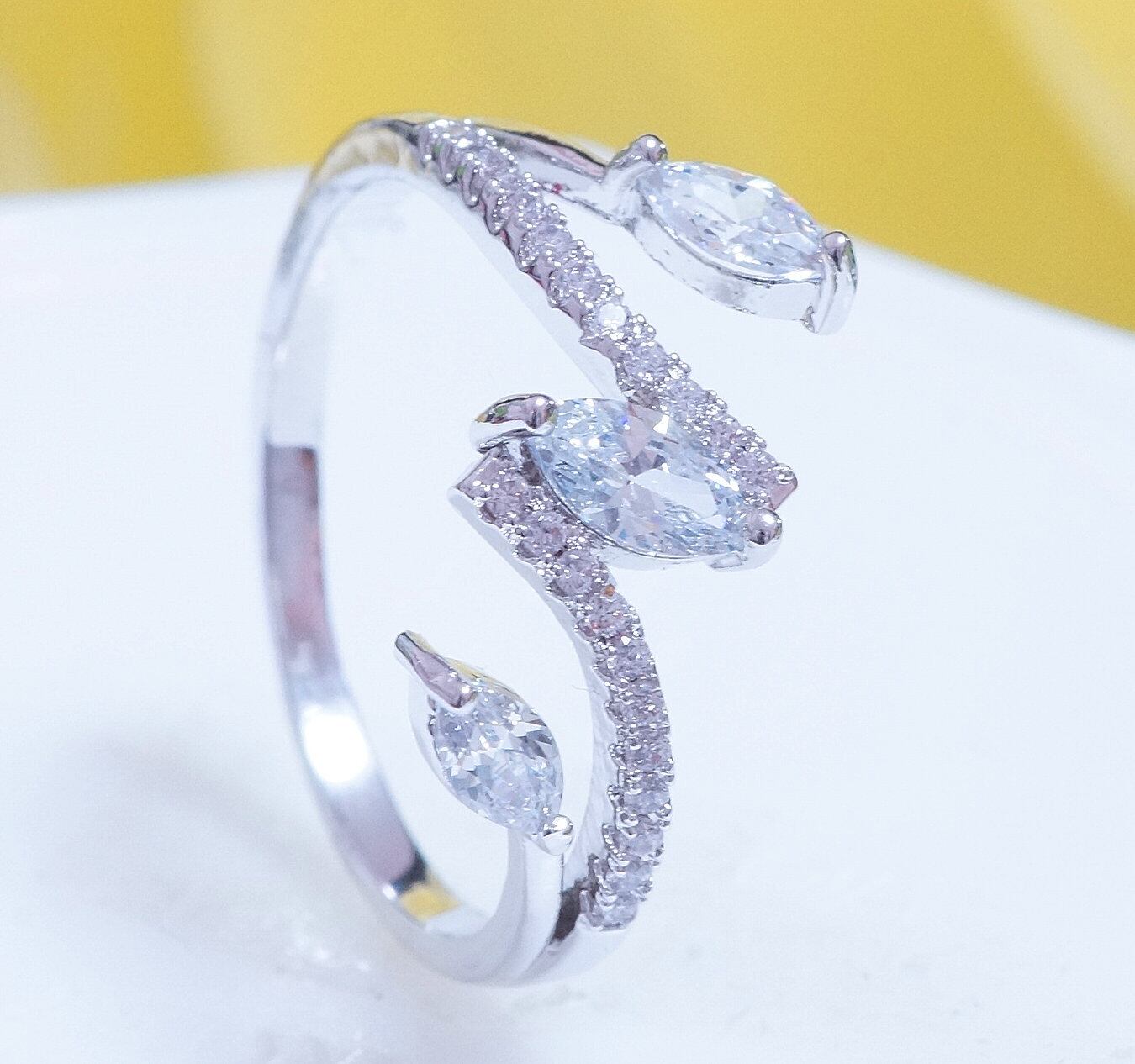 18K RGP プラチナ ダイヤ CZ フラワー リング yu1007e