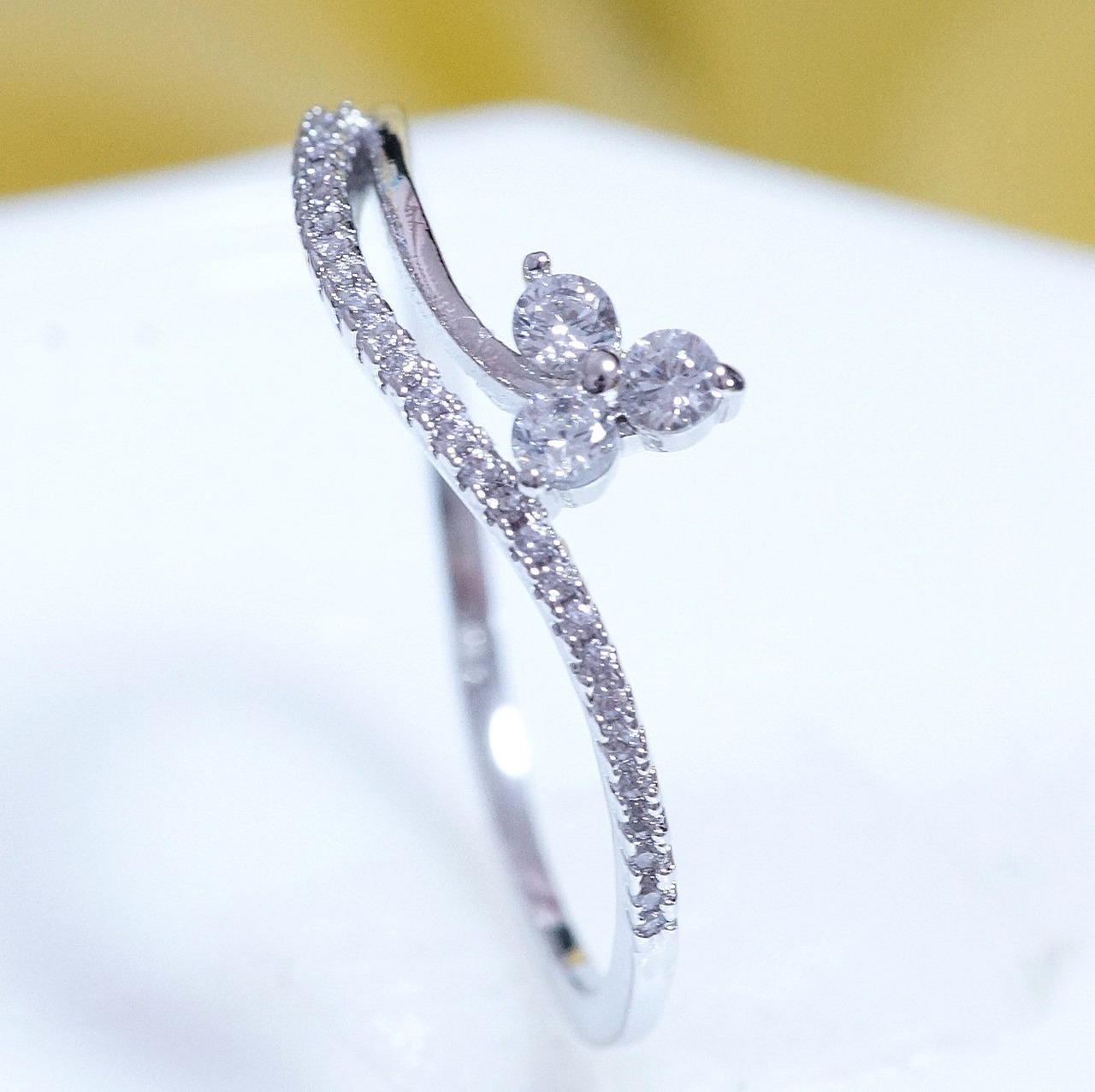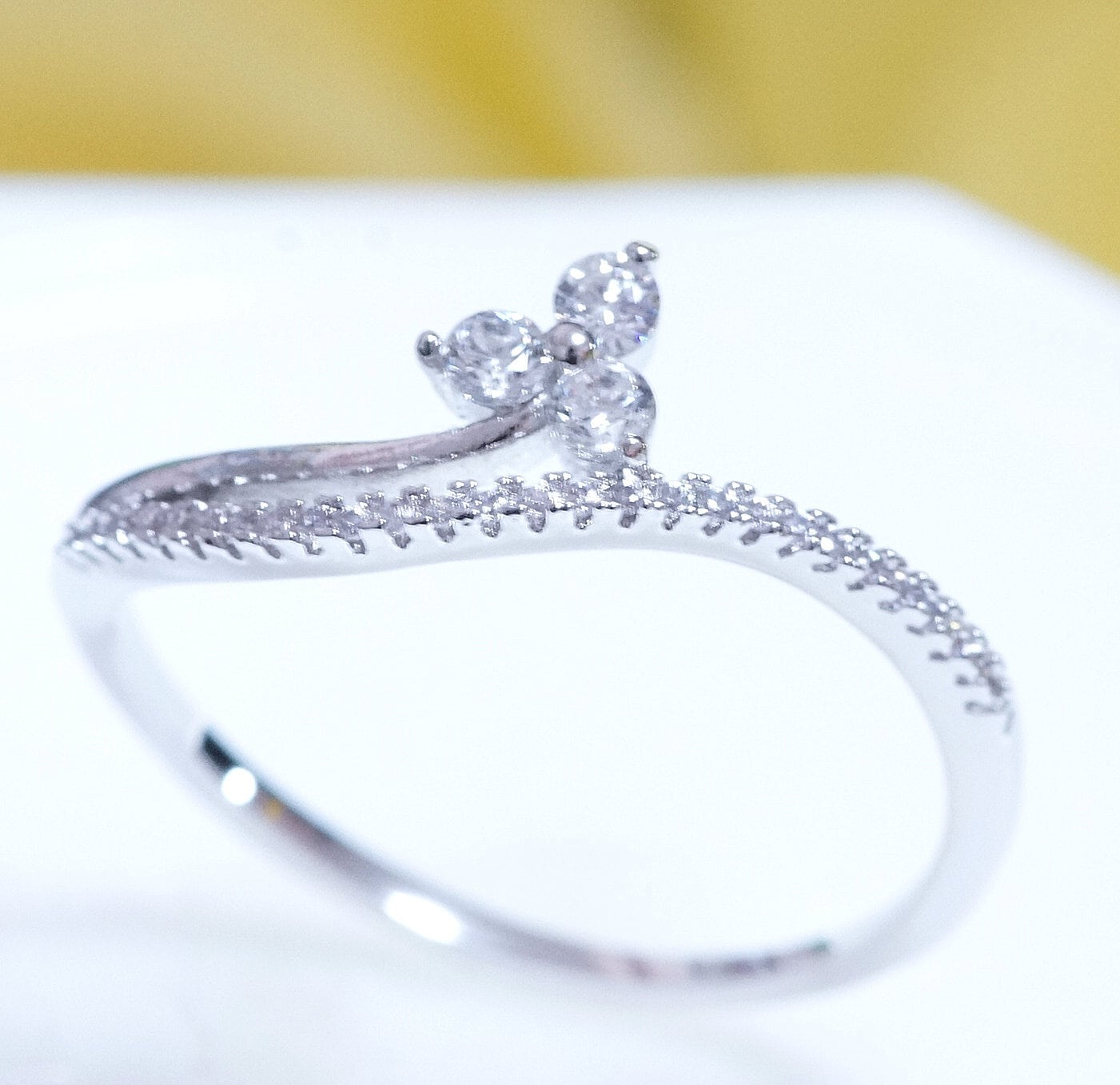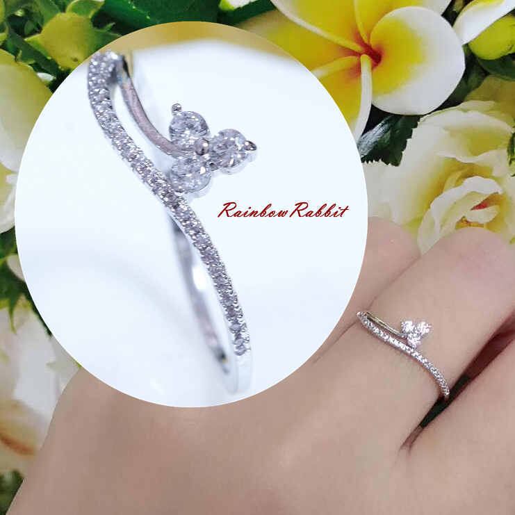 18K RGP プラチナ ダイヤ CZ 三葉 花 ハーフ エタニティ リング yu1012e