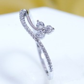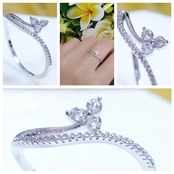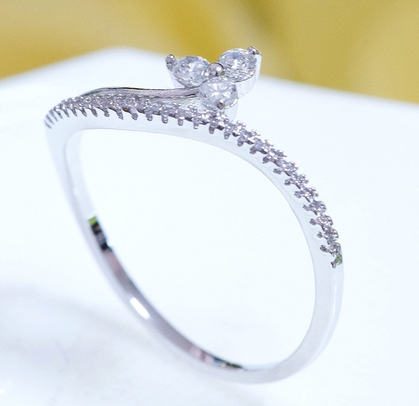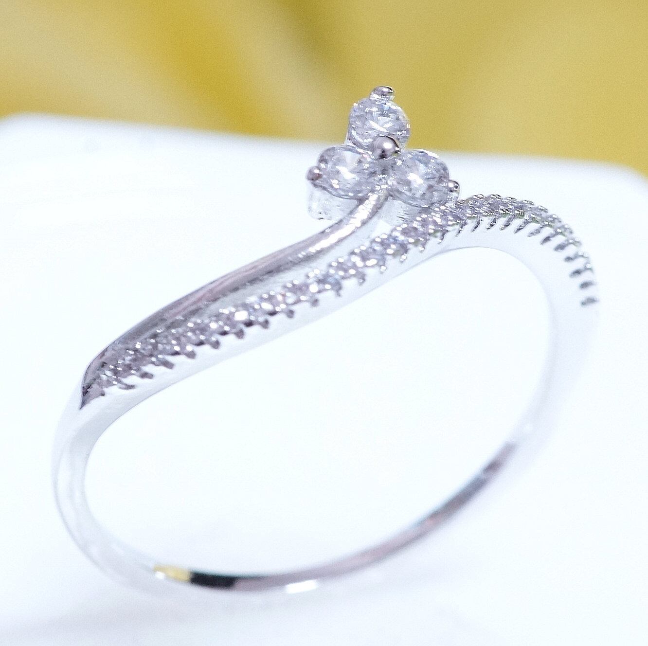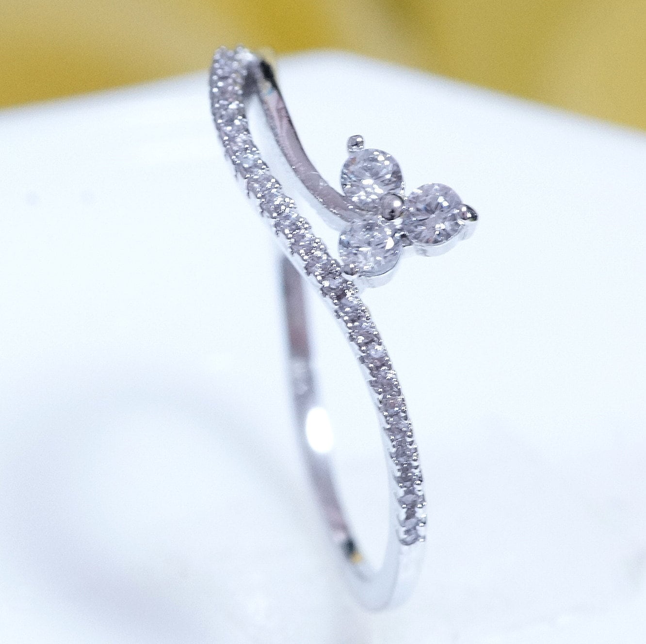 18K RGP プラチナ ダイヤ CZ 三葉 花 ハーフ エタニティ リング yu1012e