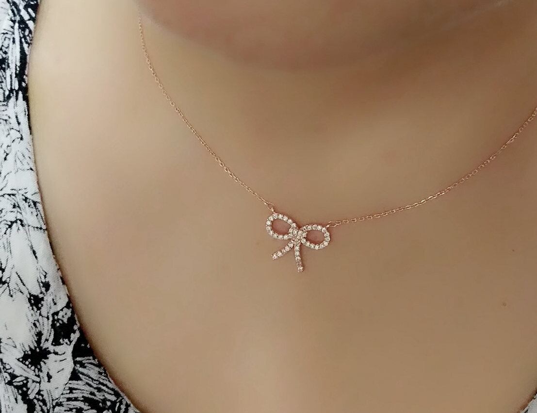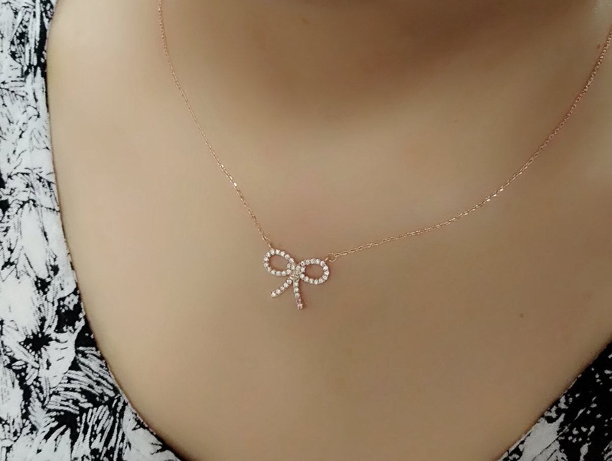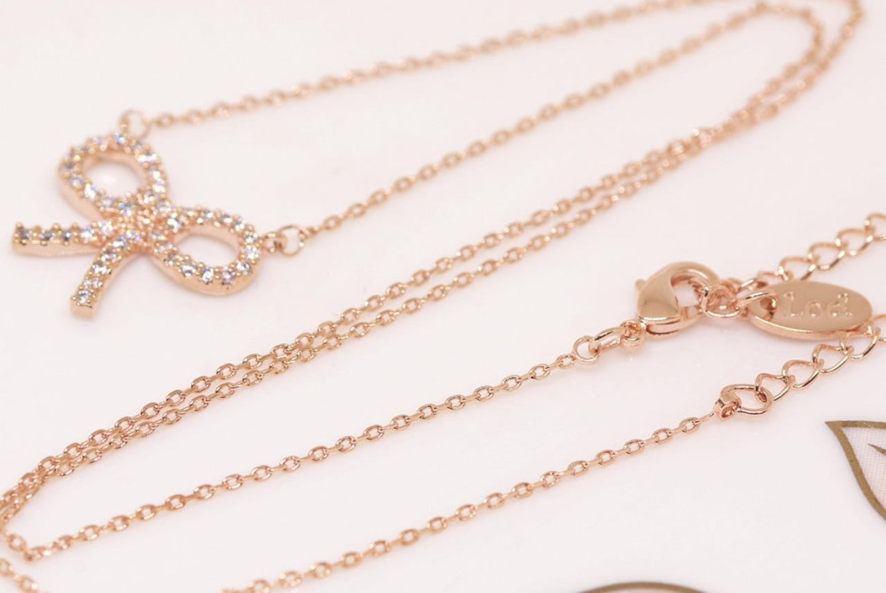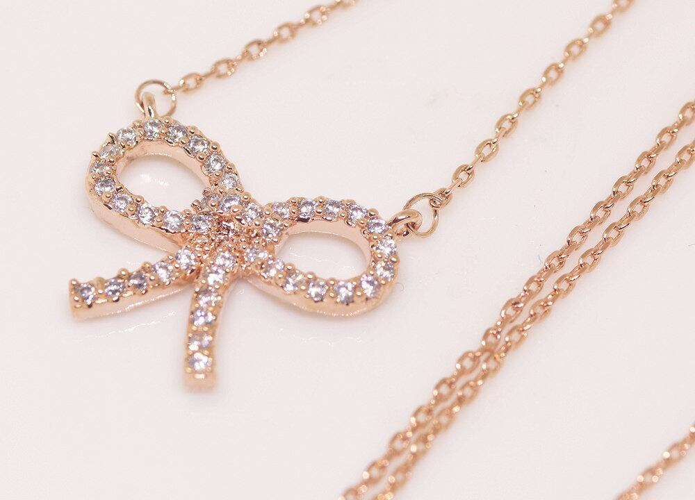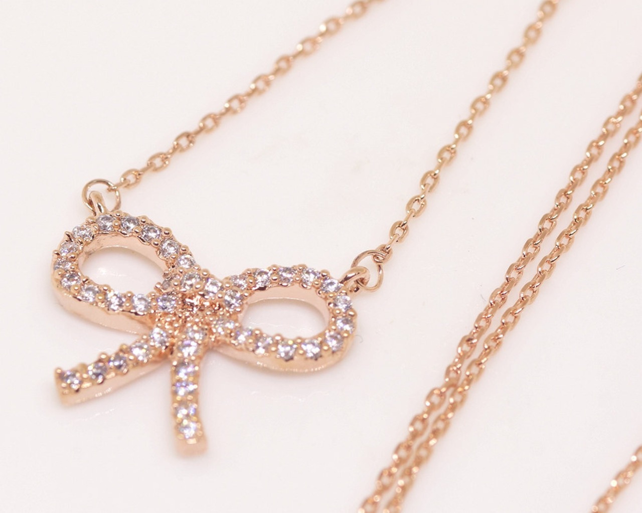18K RGP ゴールド ダイヤ CZ リボン ネックレス pn3563