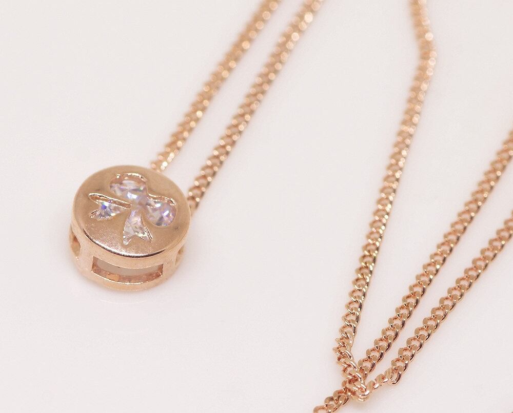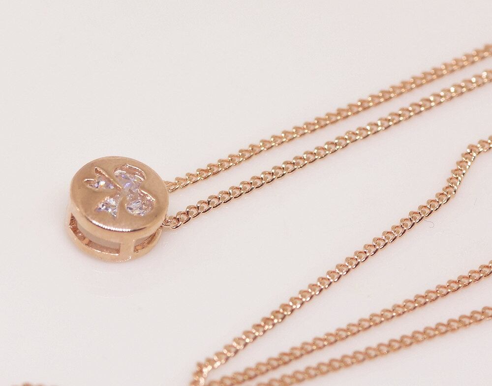 18K RGP ゴールド ダイヤ CZ リボン 1粒 揺れ ネックレス pn3592