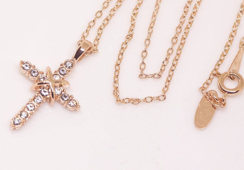 18K RGP ゴールド 高級 CZ クロス ネックレス pn3722