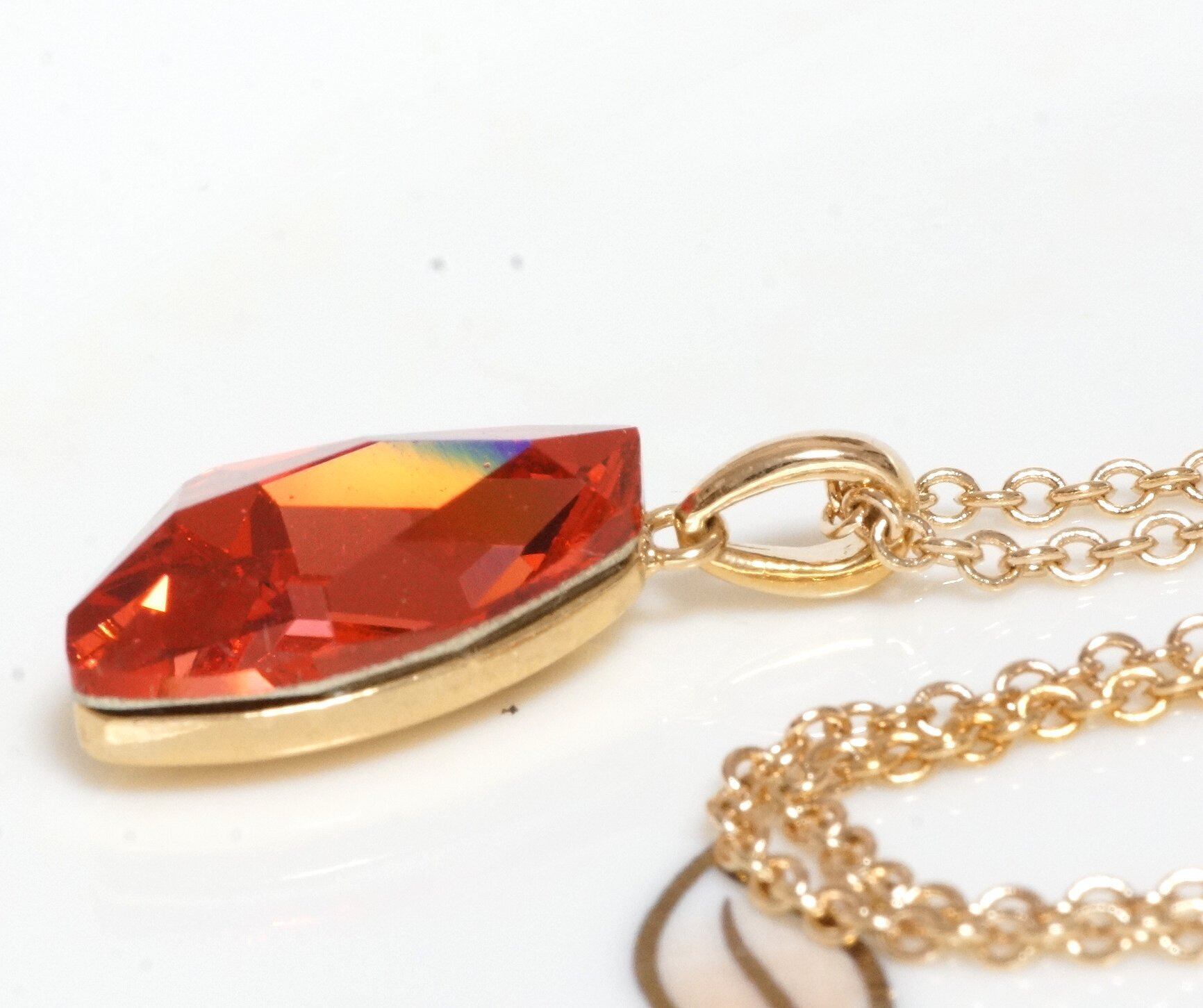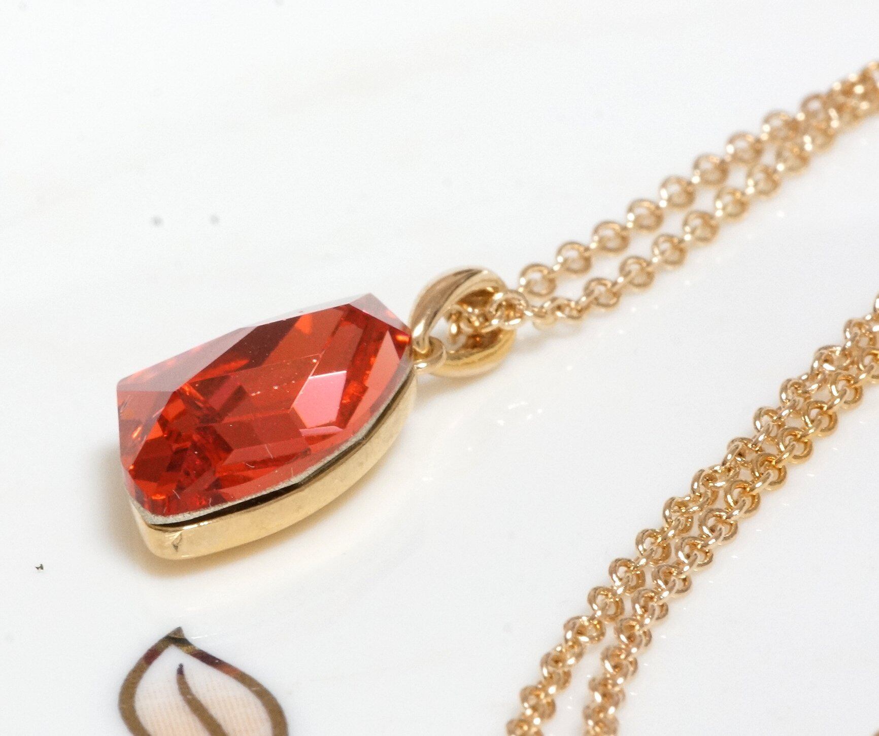 18K RGP ゴールド ダイヤ CZ レッド ネックレス pn3726