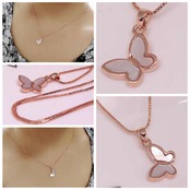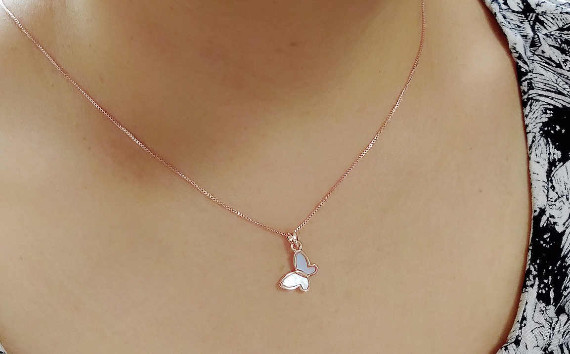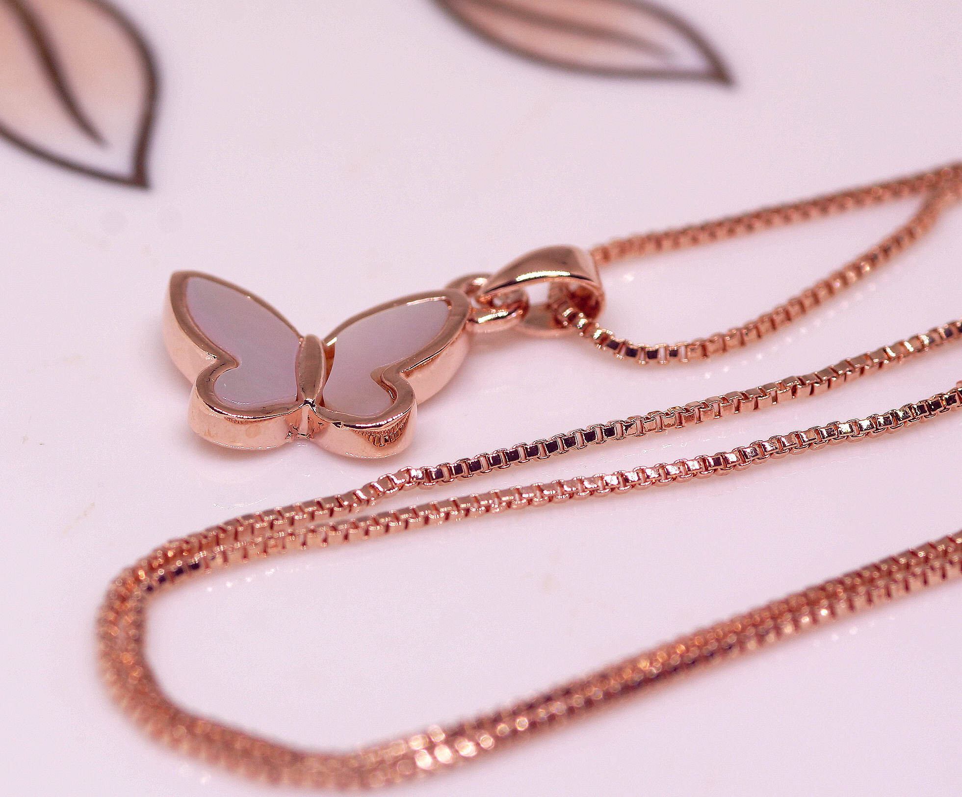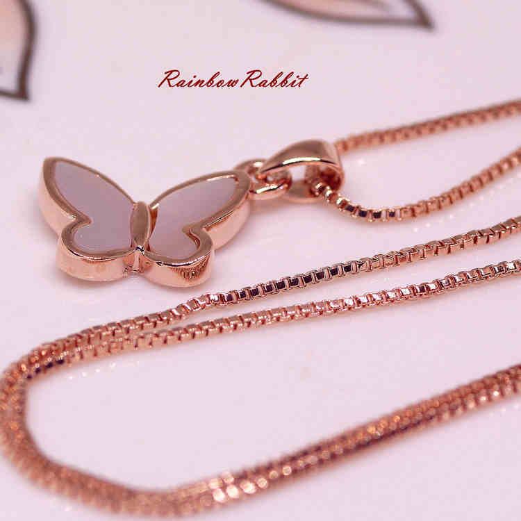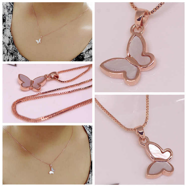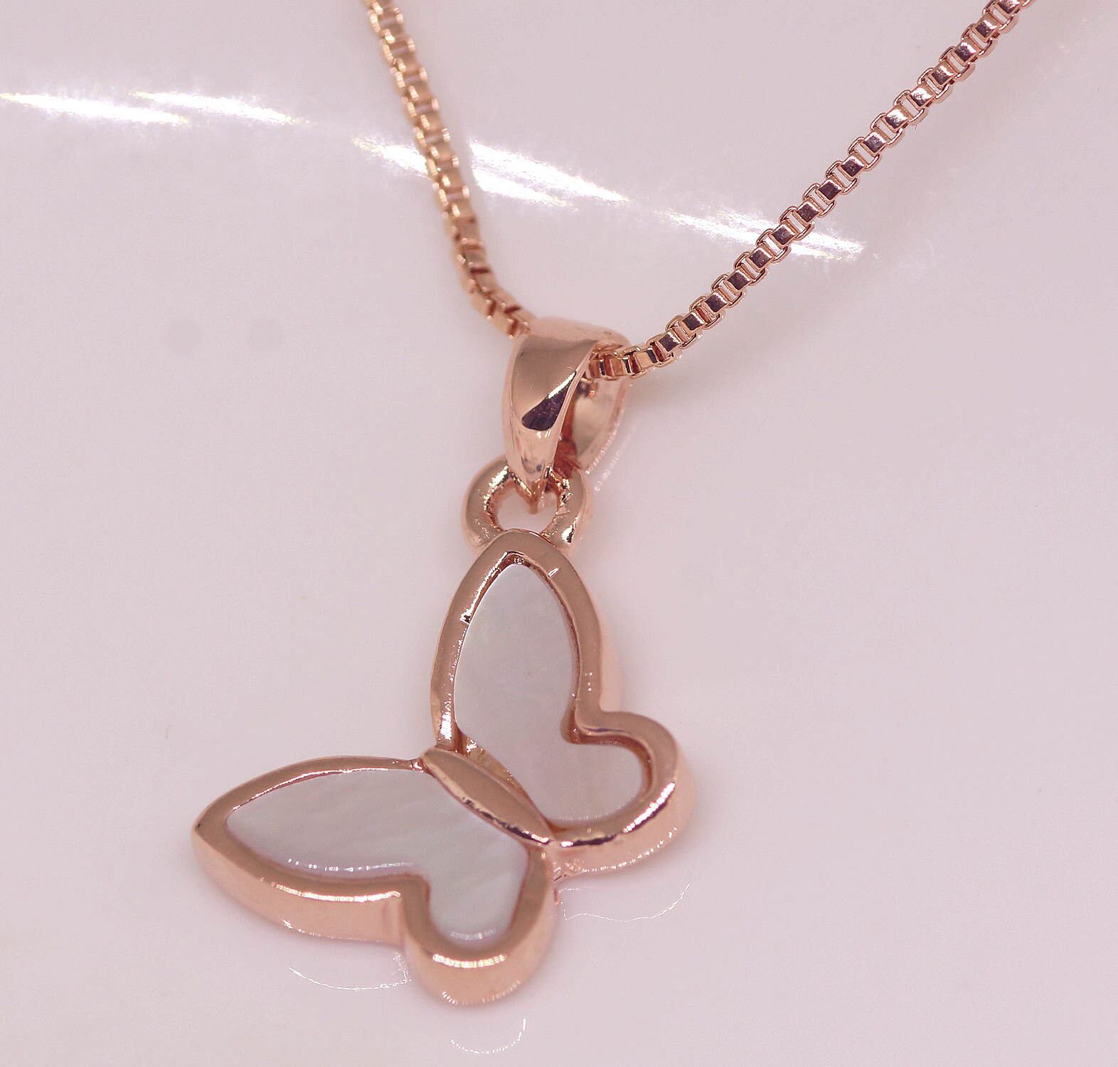 18K RGP ゴールド 貝殻石 蝶々 揺れ ネックレス pn3774