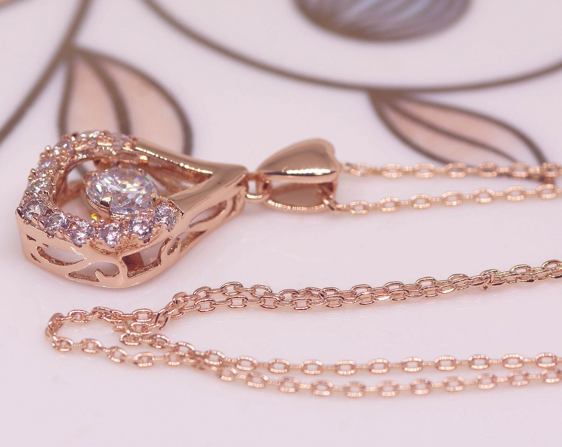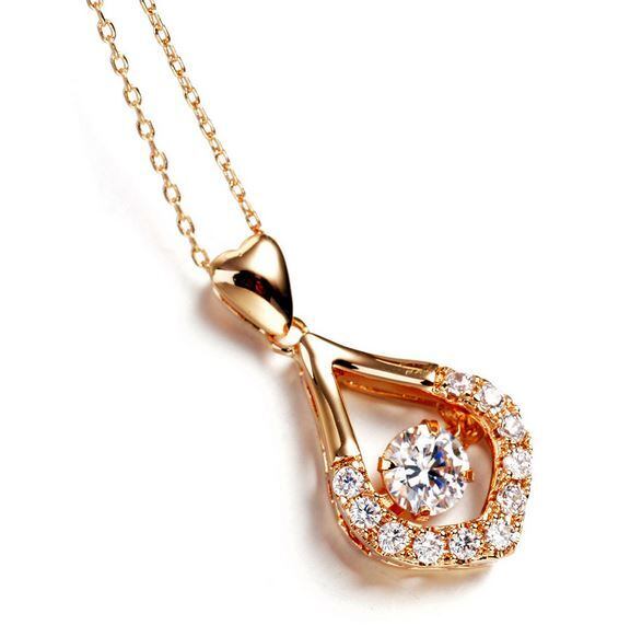 18K RGP ゴールド ダイヤ CZ 雫 一粒 ネックレス pn3772