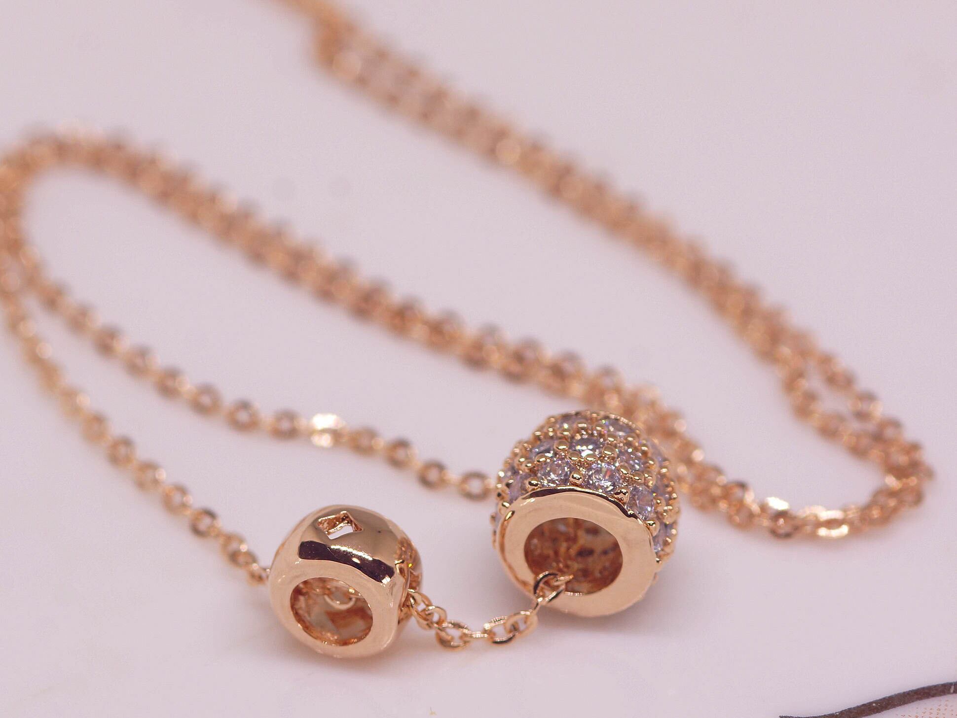 18K RGP ゴールド ダイヤ CZ リング ネックレス pn3766