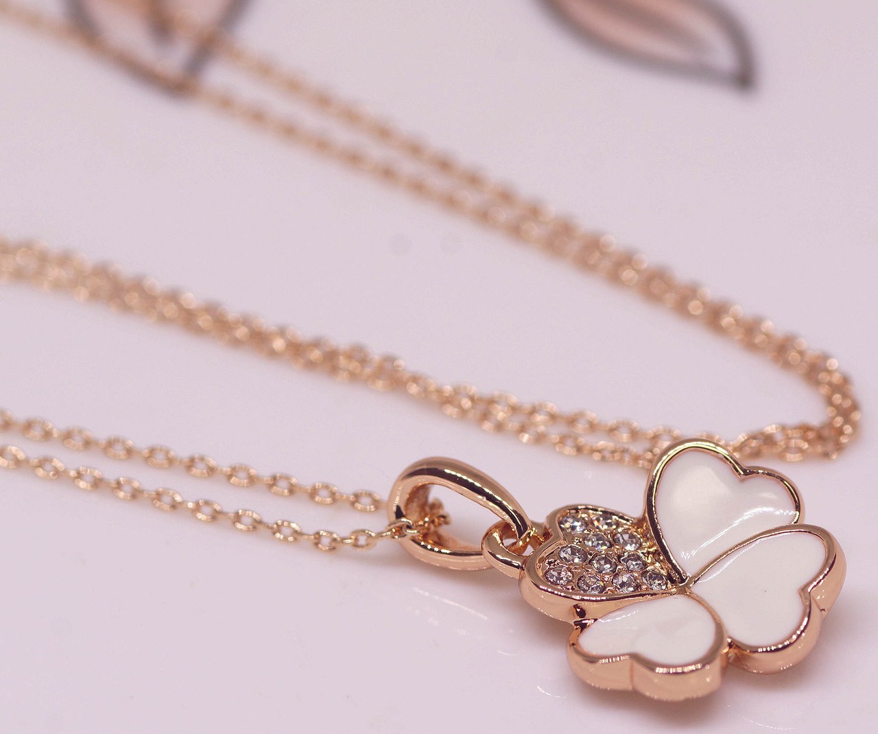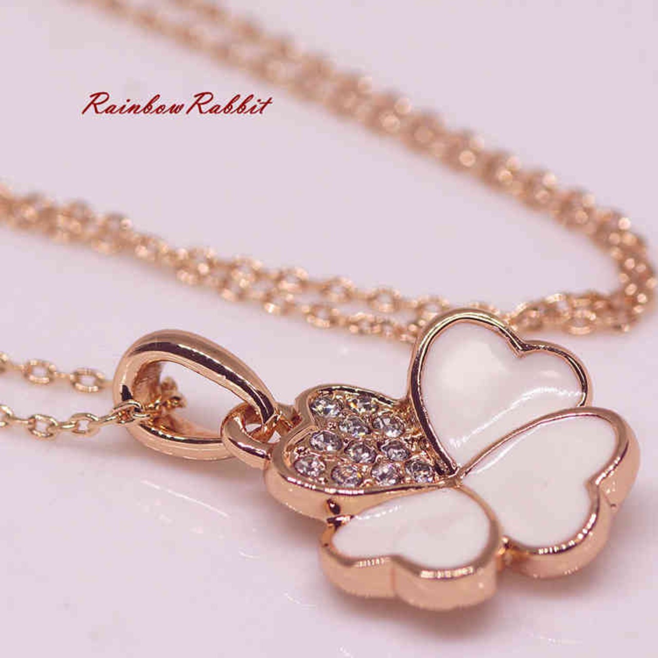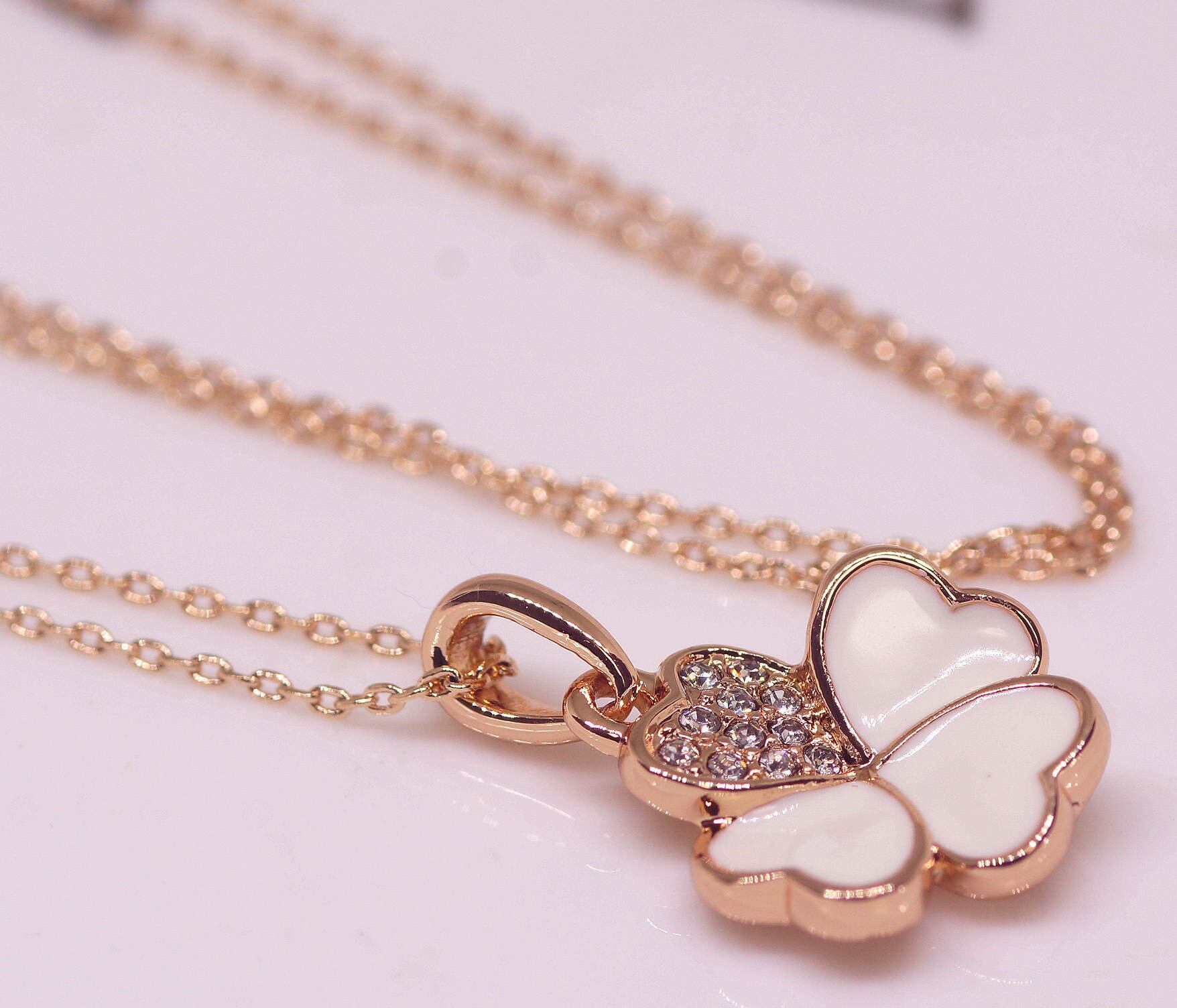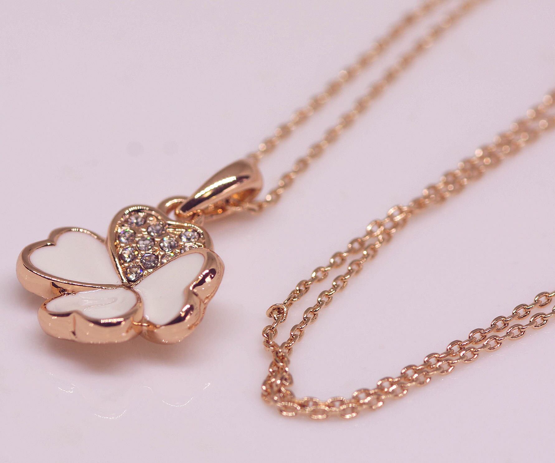 18K RGP ゴールド CZ 四葉 フラワー ネックレス pn3759
