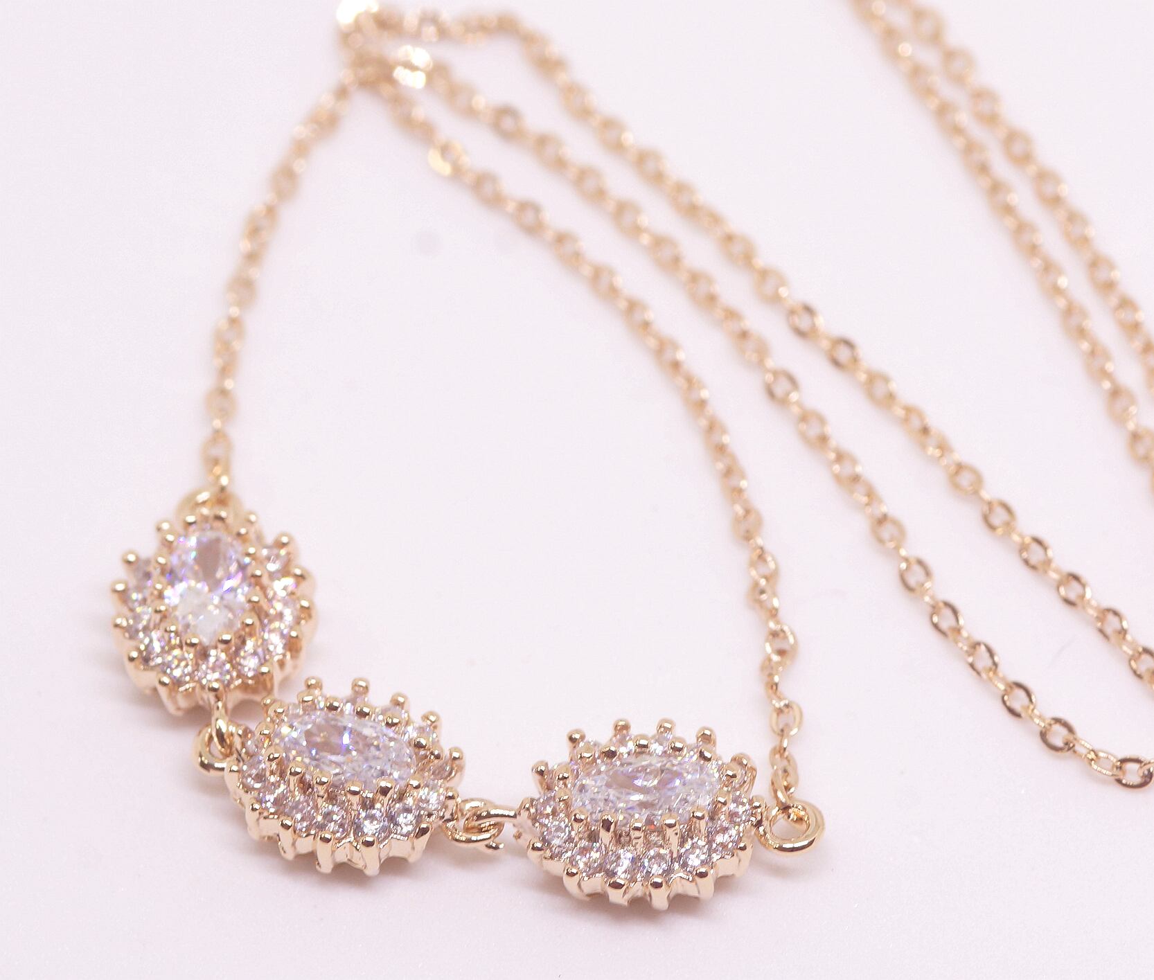 18K RGP ゴールド ダイヤ CZ 小粒 フラワー ネックレス pn3819