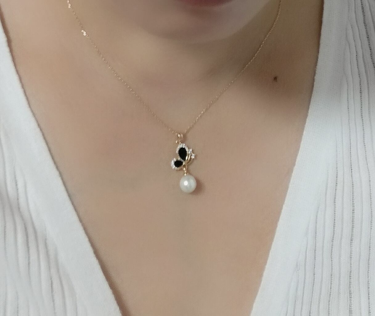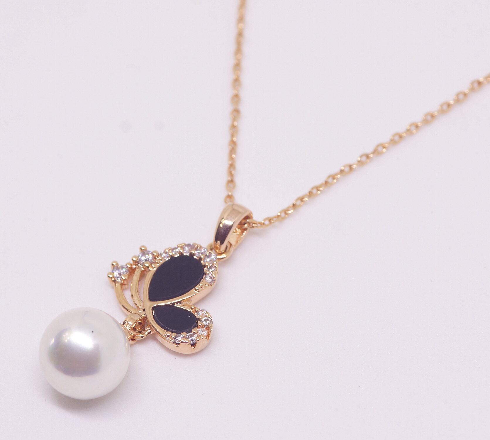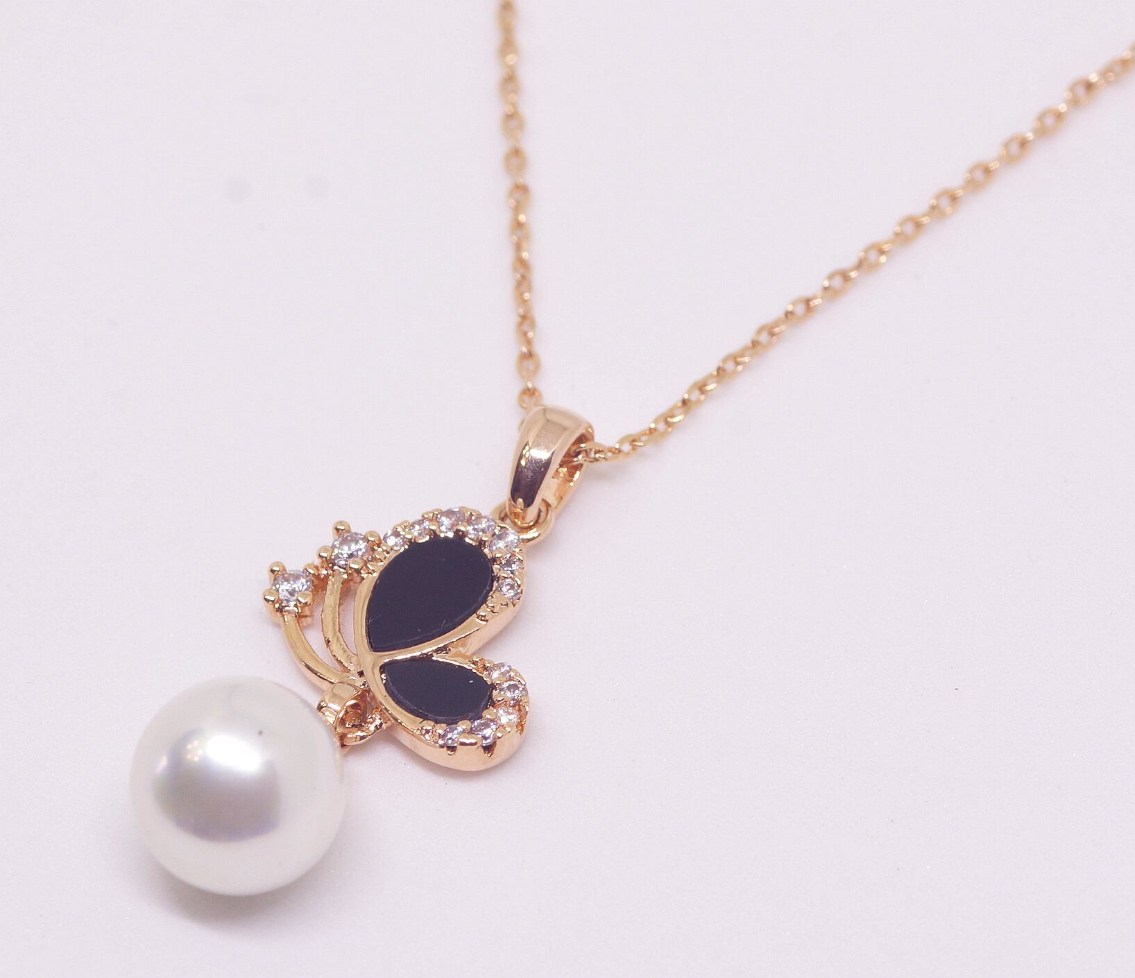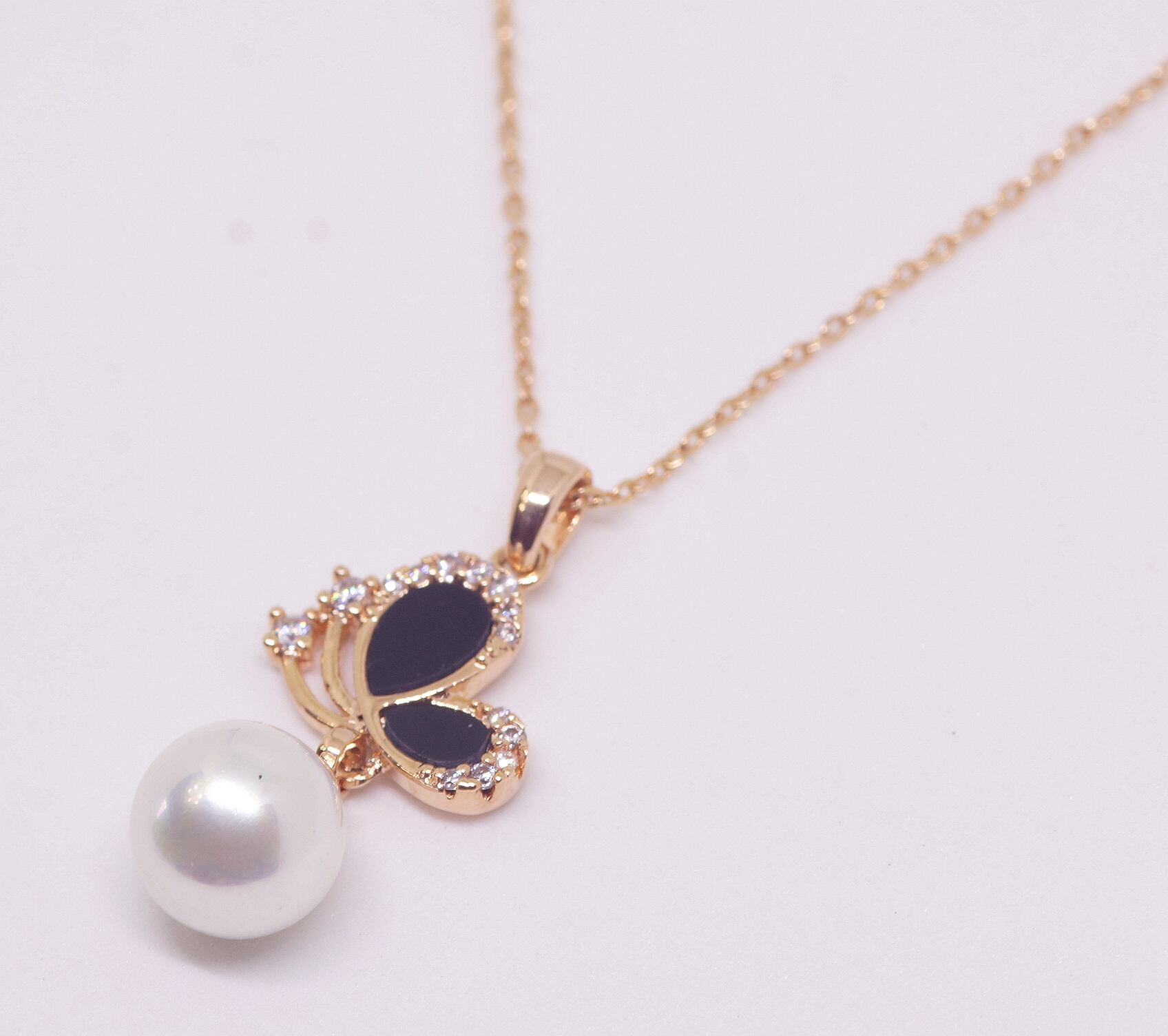 18K RGP ゴールド ダイヤ CZ 蝶々 パール ネックレス pn3821
