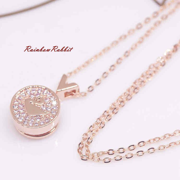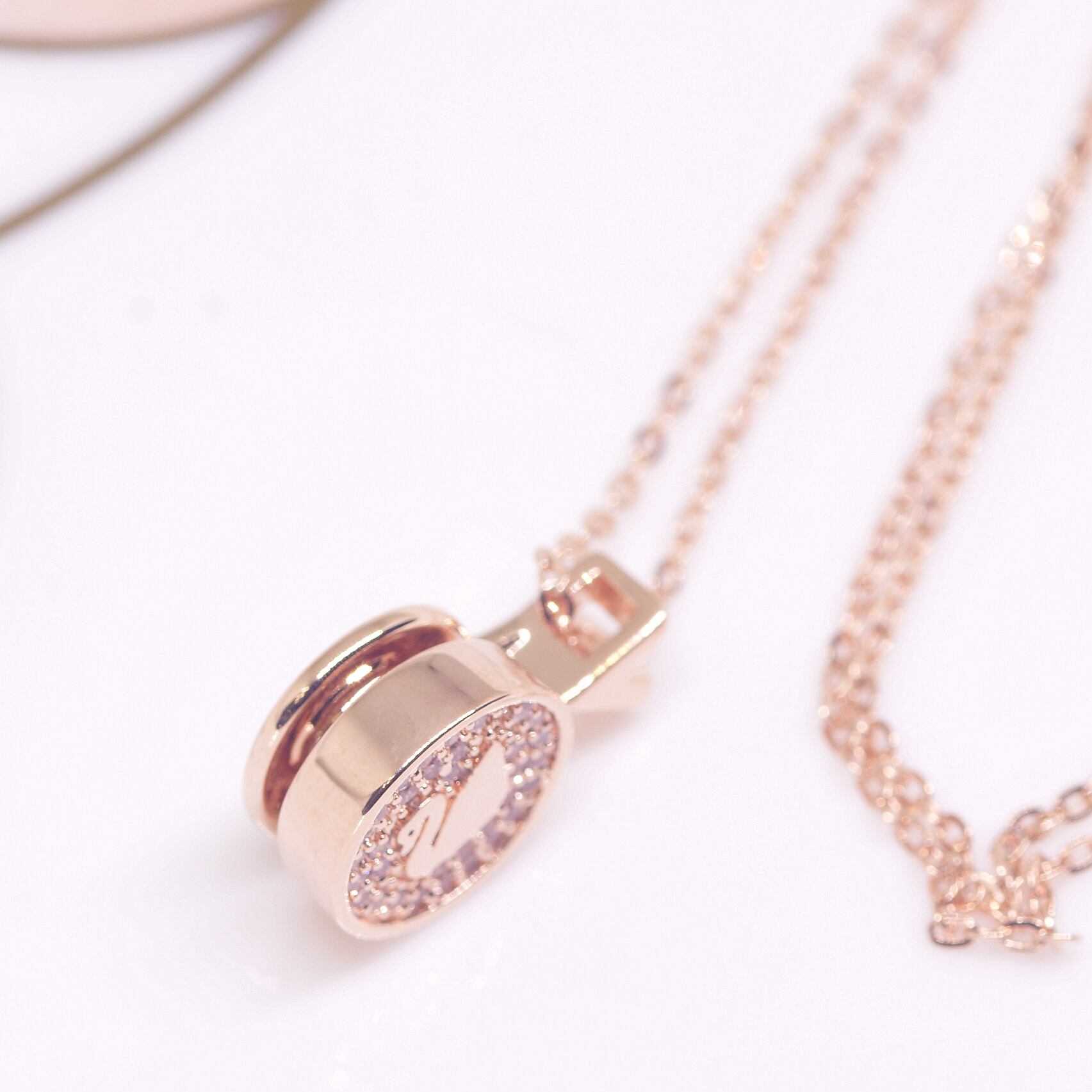 18K RGP ゴールド ダイヤ CZ 白鳥 回転 ラッキー ネックレス pn3837