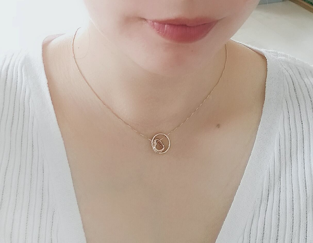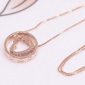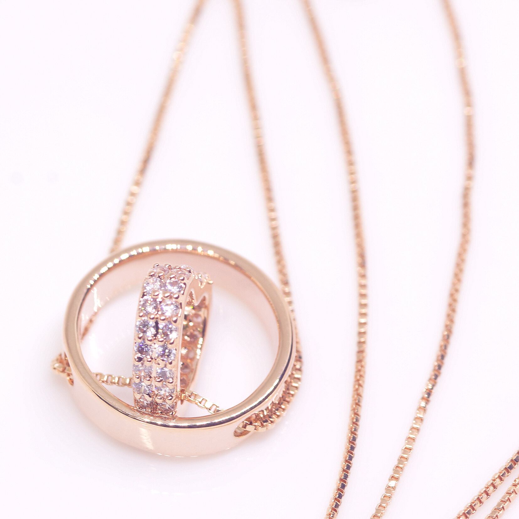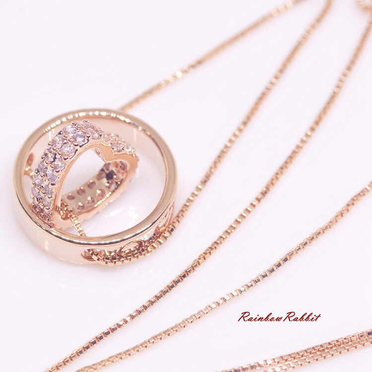18K RGP ゴールド ダイヤ CZ ハート リング ネックレス pn3840