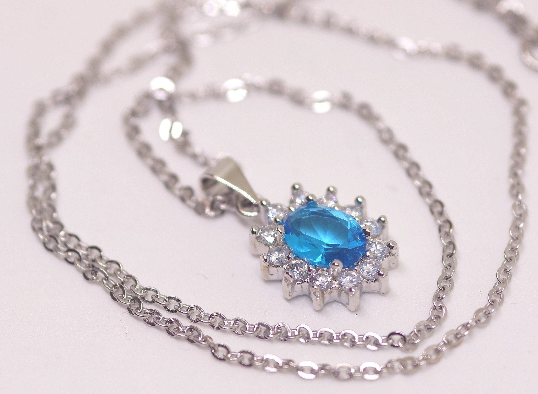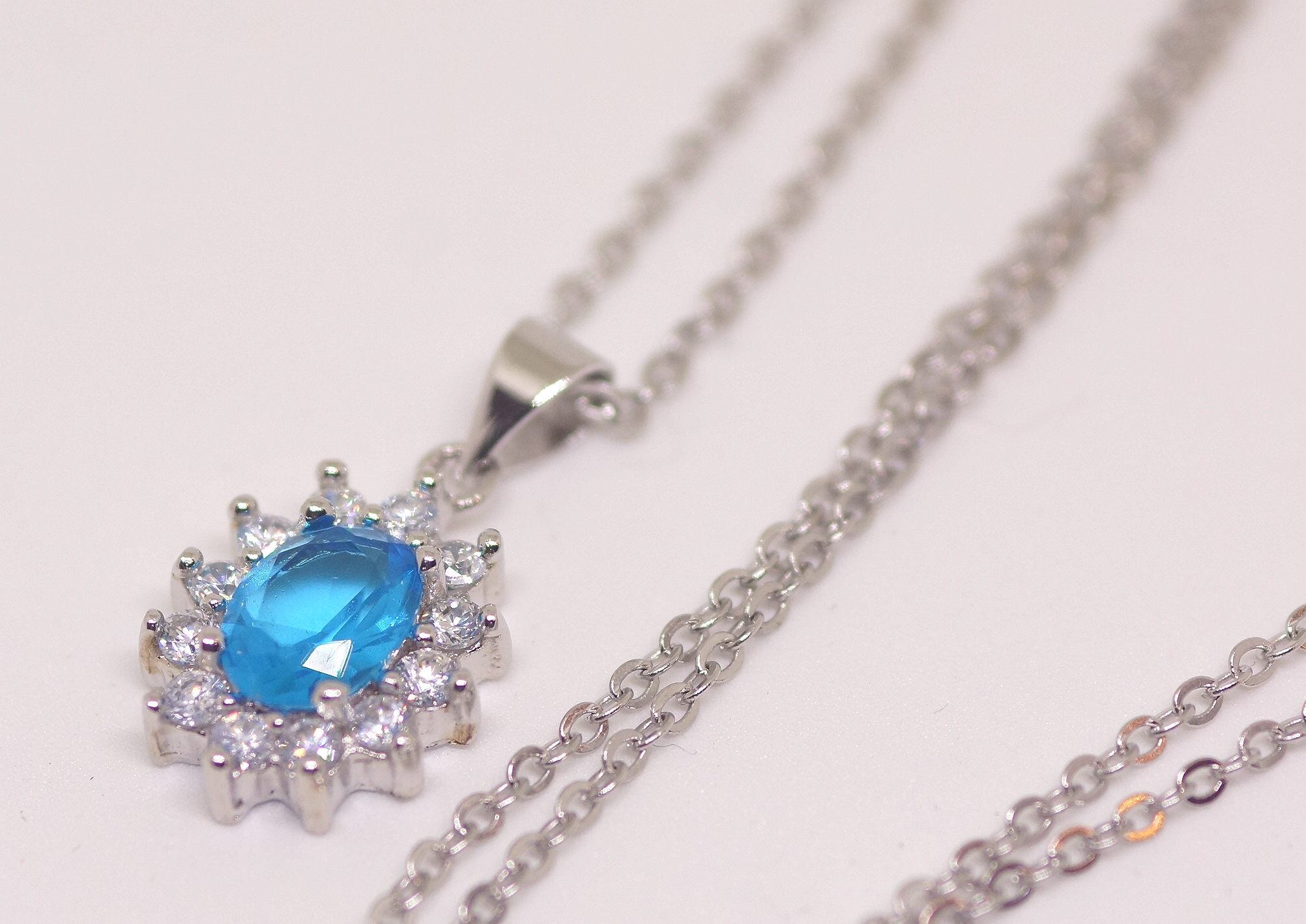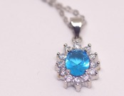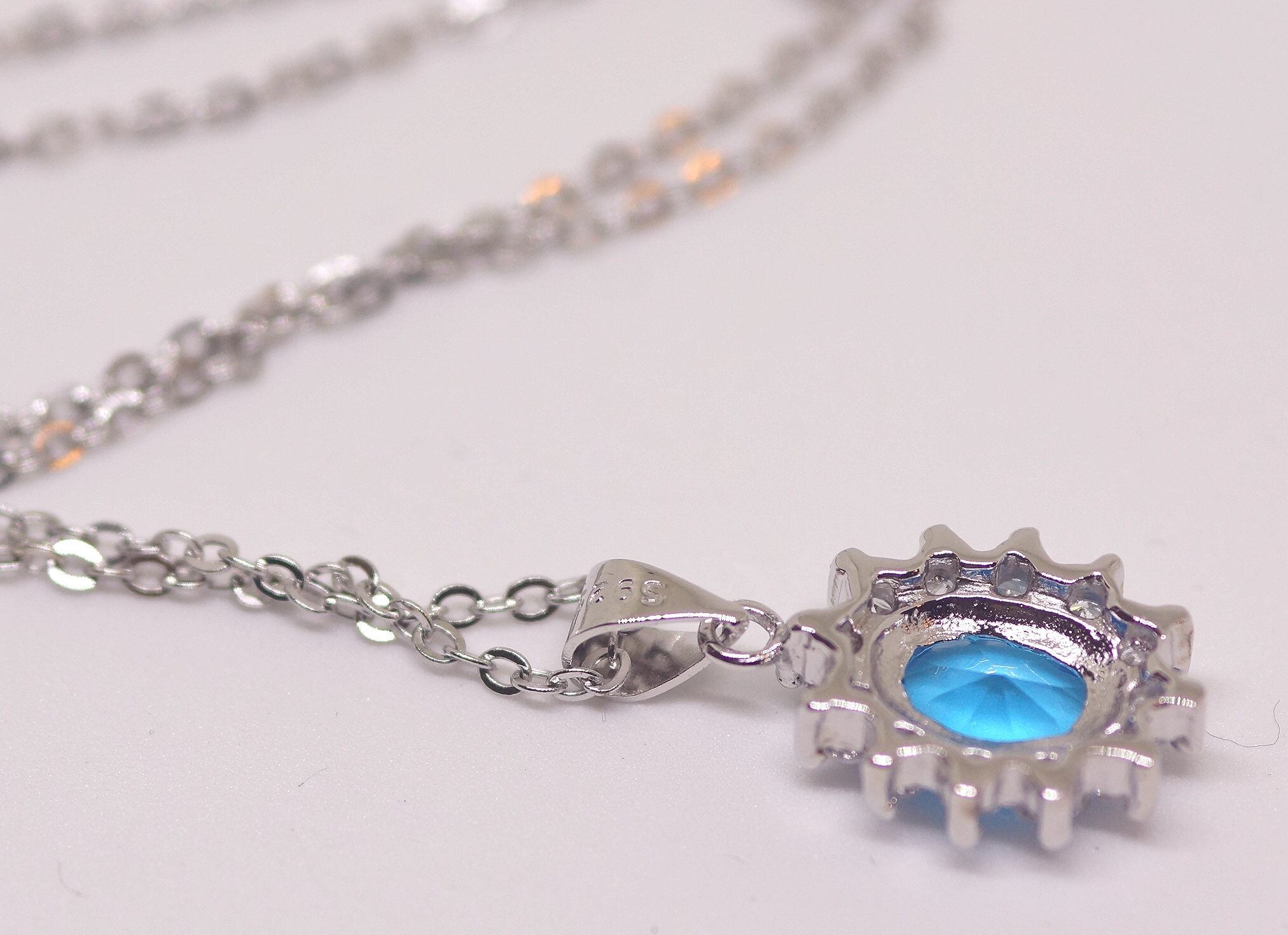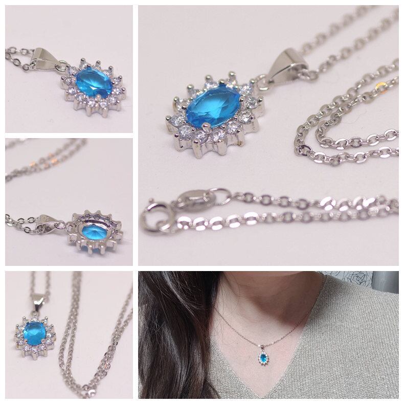 S925 高級 ダイヤ CZ ブルー フラワー ネックレス yn3171