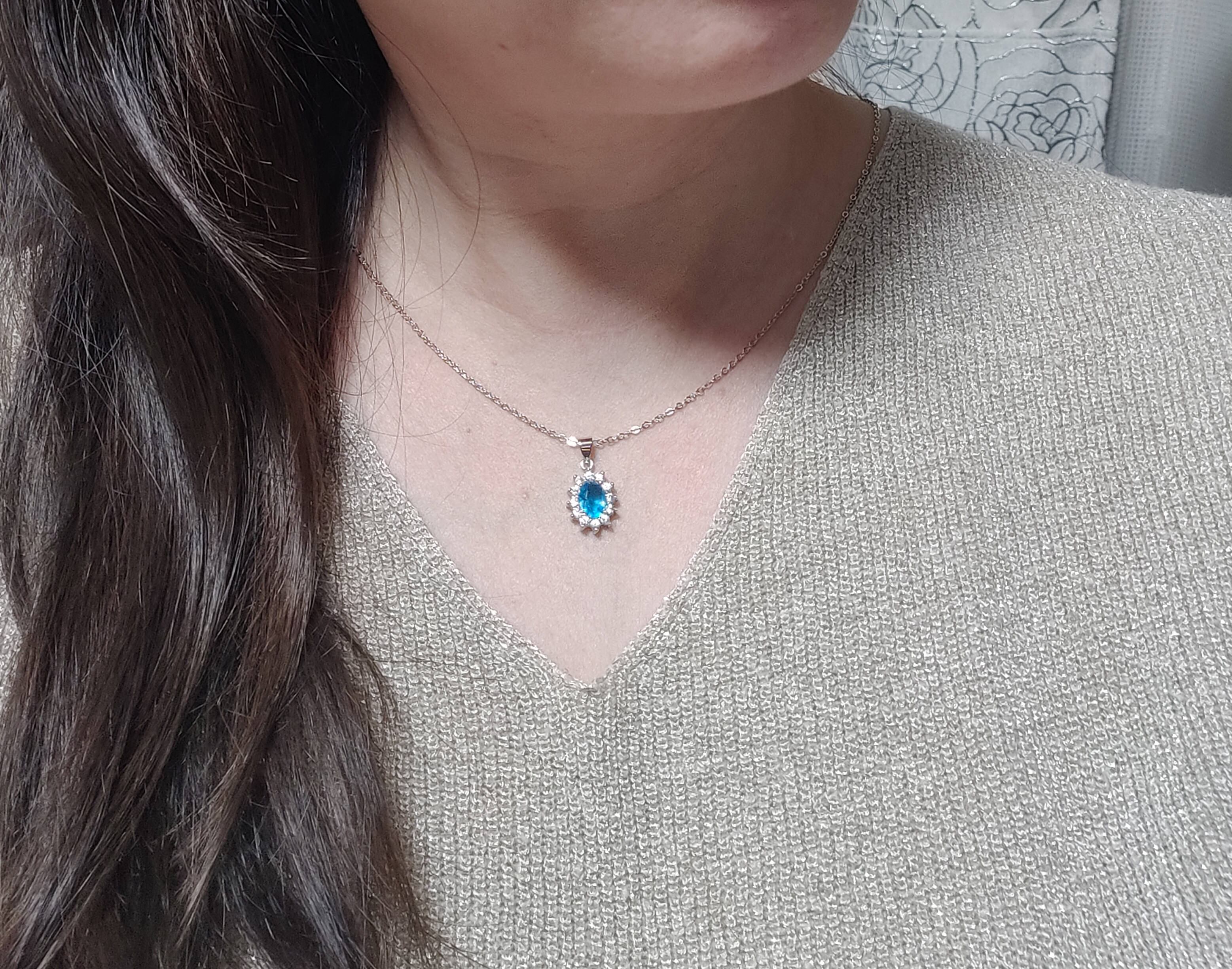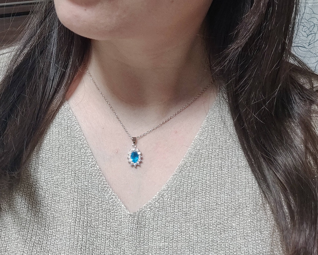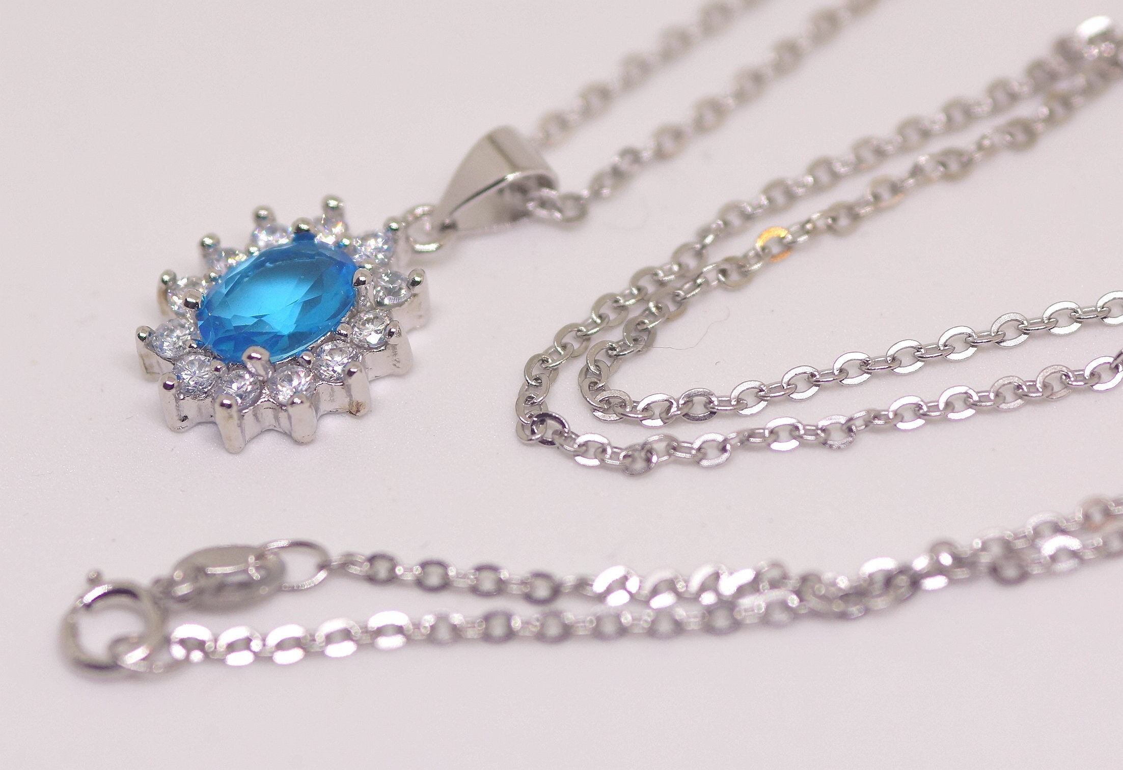 S925 高級 ダイヤ CZ ブルー フラワー ネックレス yn3171