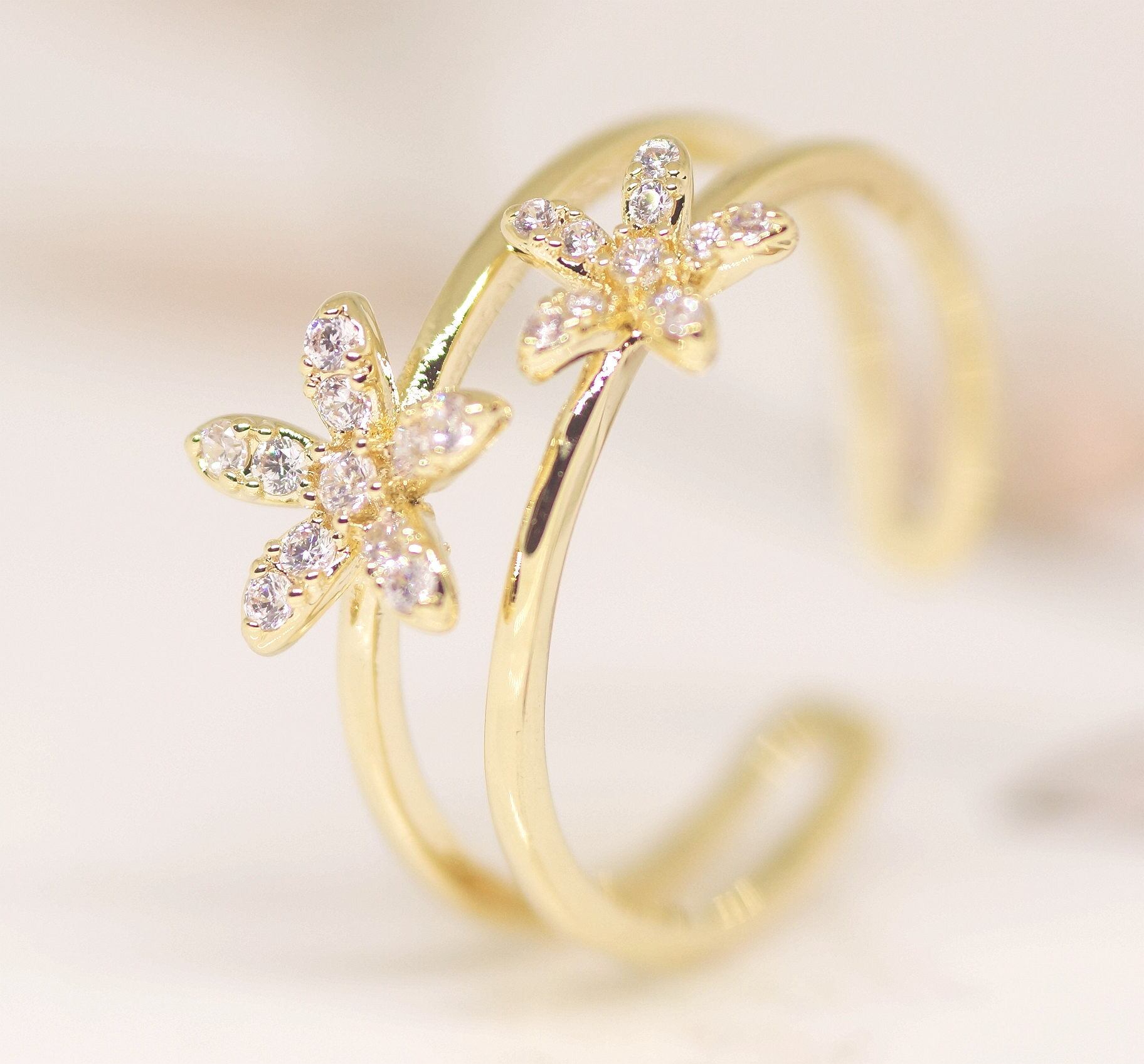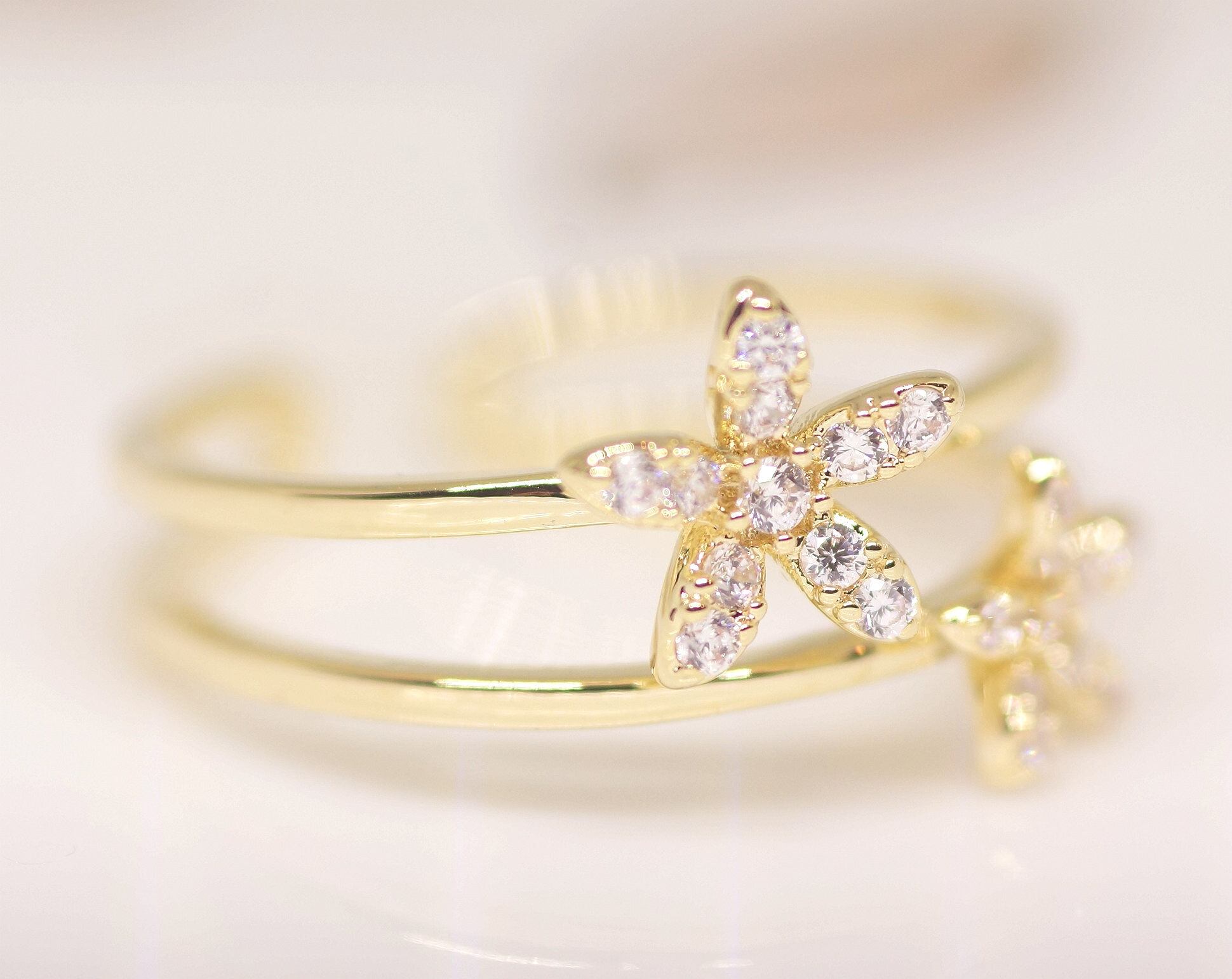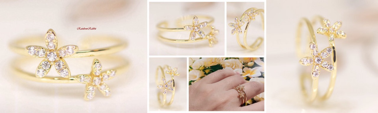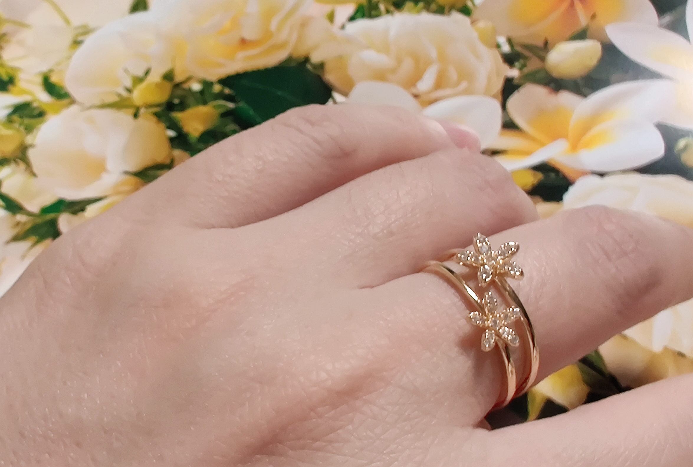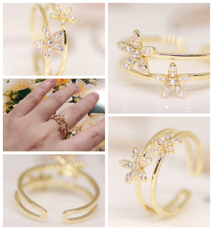 18K RGP ゴールド ダイヤ CZ フラワー リング gu1429e